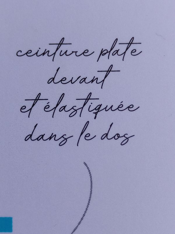 Le modèle de base, possède une ceinture plate sur le devant. Celle-ci est élastiquée dans le dos pour plus de confort!