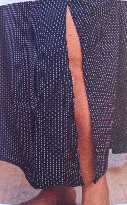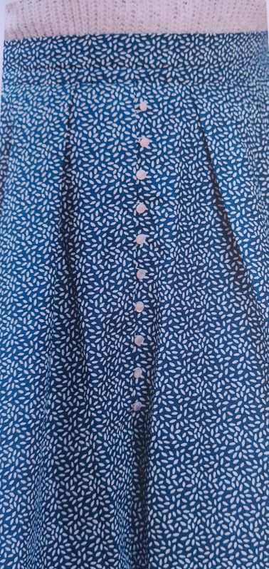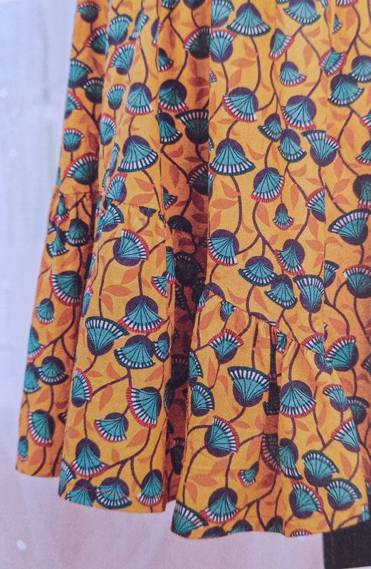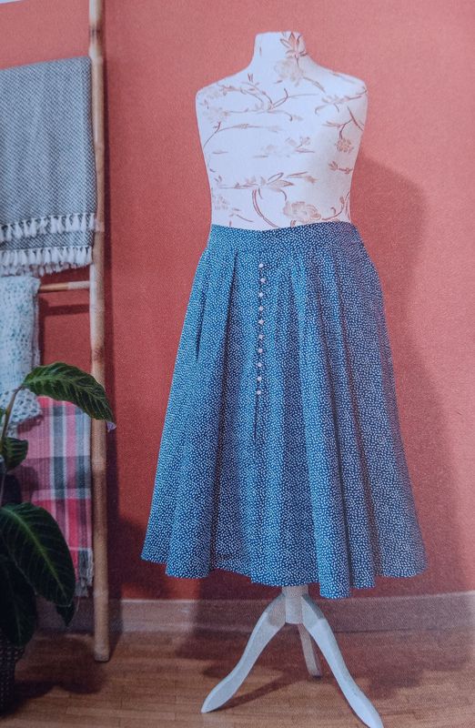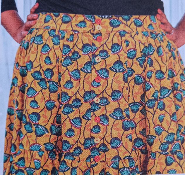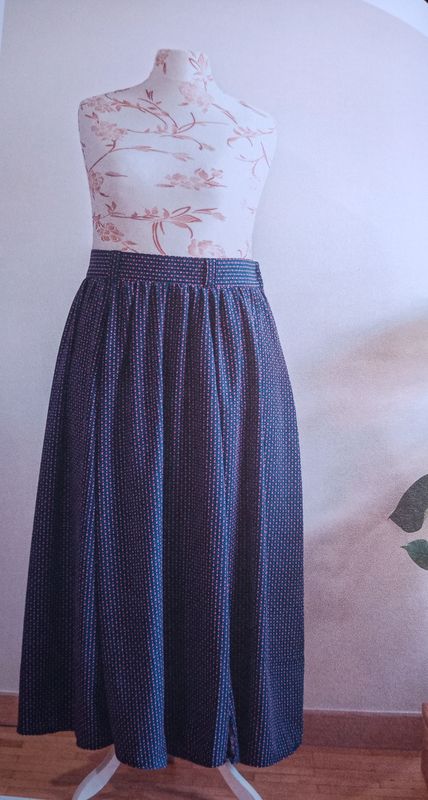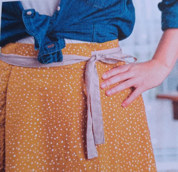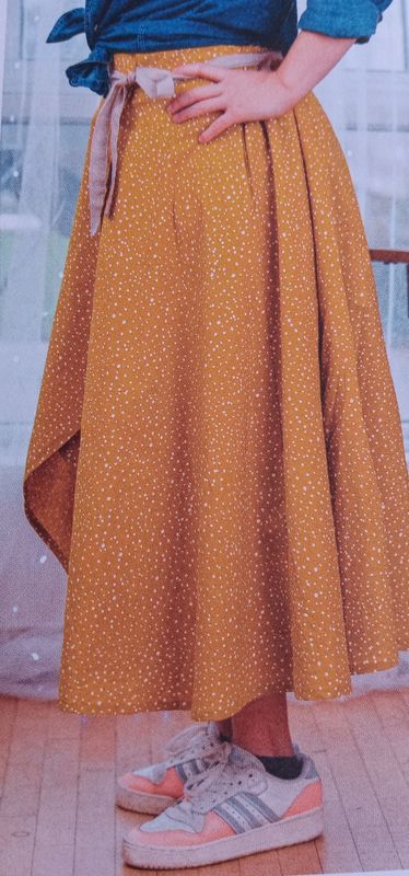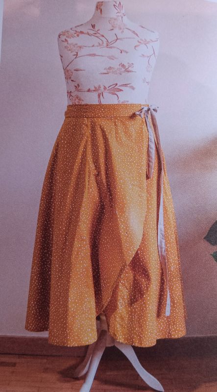 Regardez moi ce modèle appelé la voyageuse! Une jupe portefeuille avec pan arrondi. Elle se noue sur le côté.