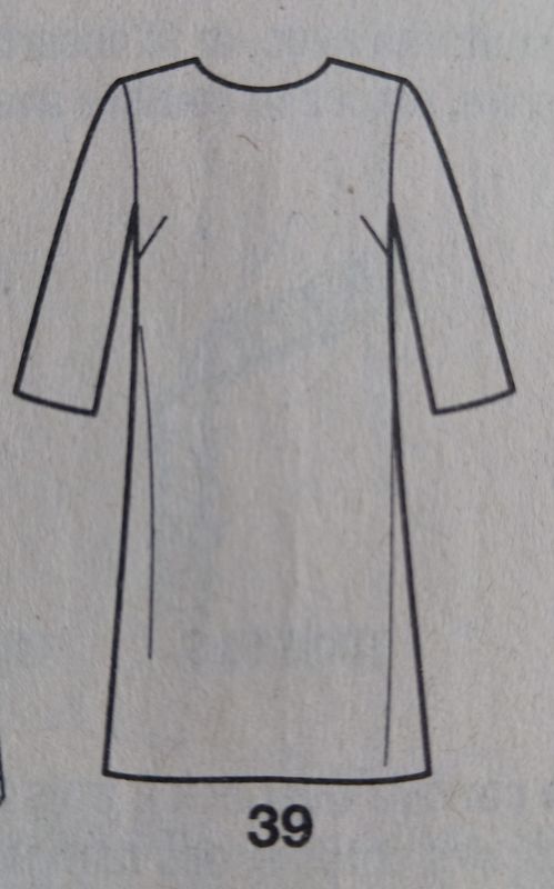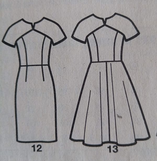 j’adore ce modèle dans les deux version en robe fourreau comme en robe avec la jupe à panneaux. Le point de mire se trouve sur le buste avec ces manches raglans et son encolure fendue. Je pense même qu’on peu plier celle-ci pour former un petit col rabattu. Elle est ajustée à l’aide de découpes. Je lui trouve un petit air rétro.