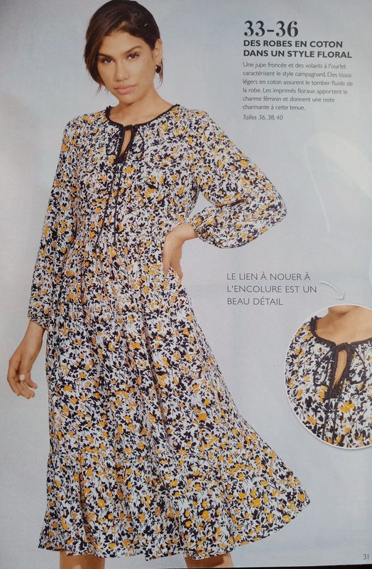 C’est dommage que pour certaines versions nous n’ayons qu’un dessin, comme pour cette robe. Je l’aime beaucoup mais la rédaction ne présente pas tous les modèles en photos.