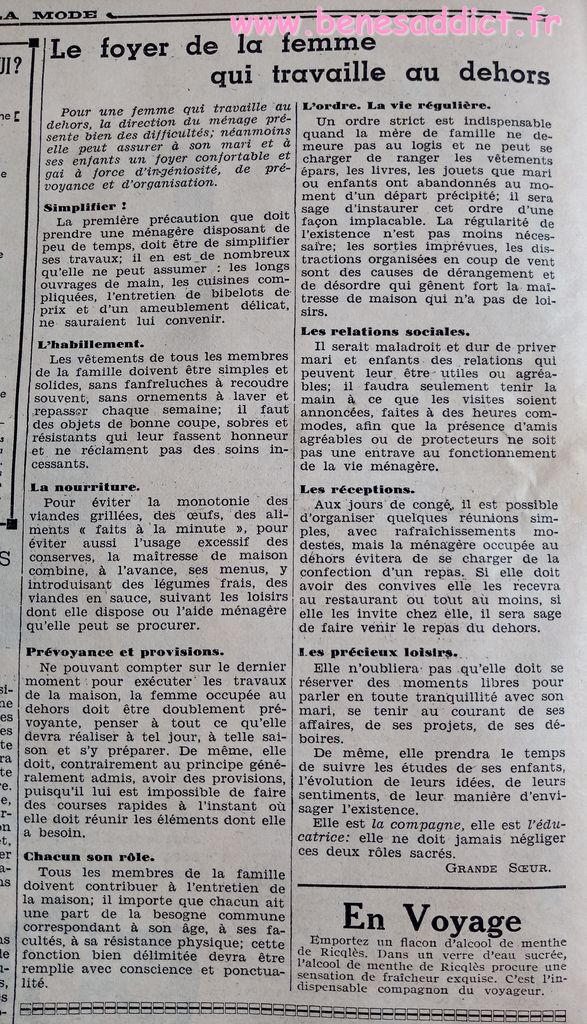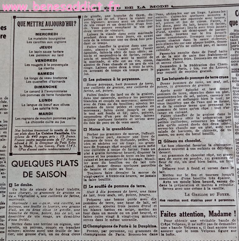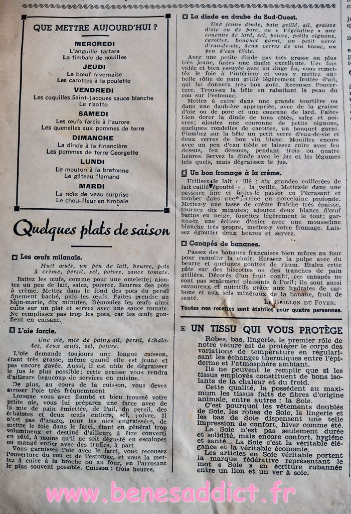 Les recettes sont traditionnelles et toujours faciles à faire! Découvrez aussi quelques astuces mode, comment porter son chapeau mais aussi, quelle coiffure pour un mariage… bref, vous trouverez de la couture, du tricot, mais aussi du crochet tout comme du bricolage, ainsi que des astuces permettant de faire des économies…
