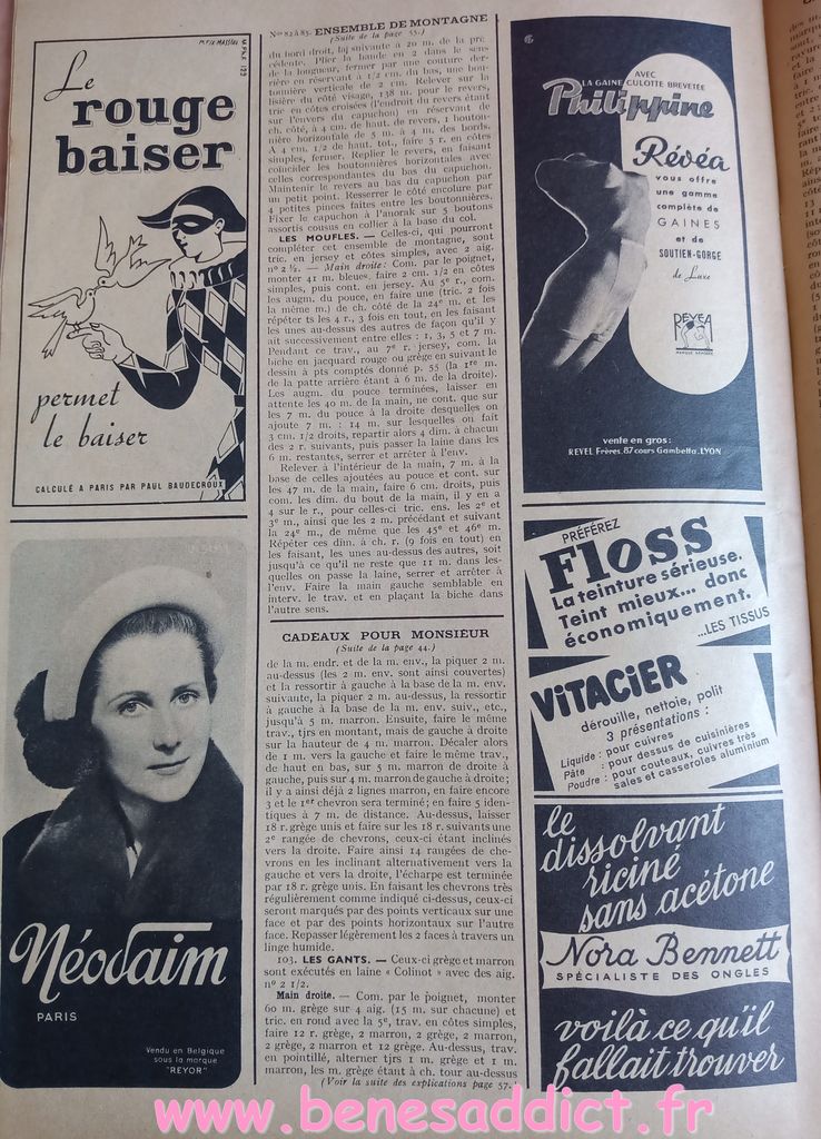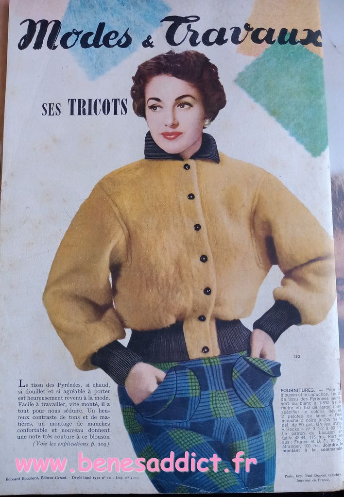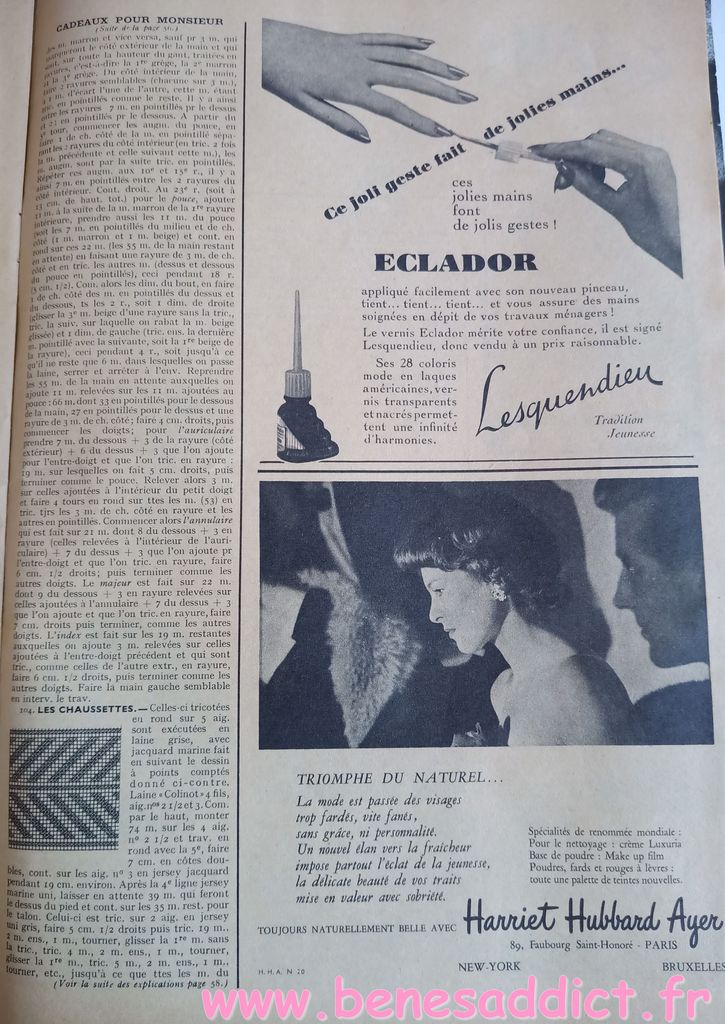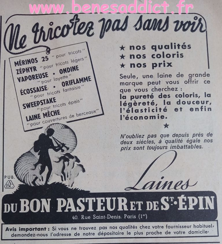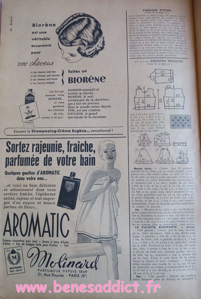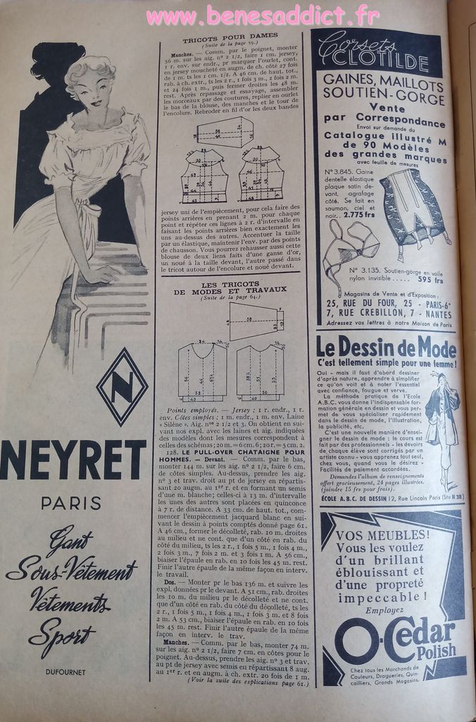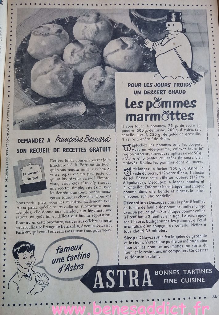 En attendant, aujourd’hui on part en 1950. Comme tous les Lundis avec de très nombreux patrons modèles tirés de Modes et Travaux de cette année là. Je craque pour les publicités que je sélectionne. Mais aussi pour les recettes traditionnelles et souvent astucieuses.