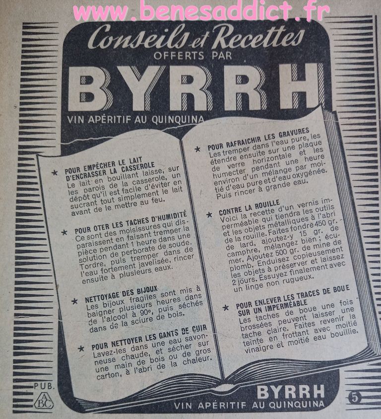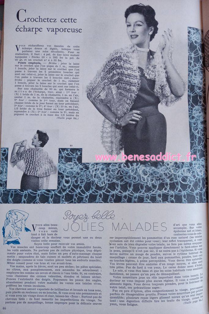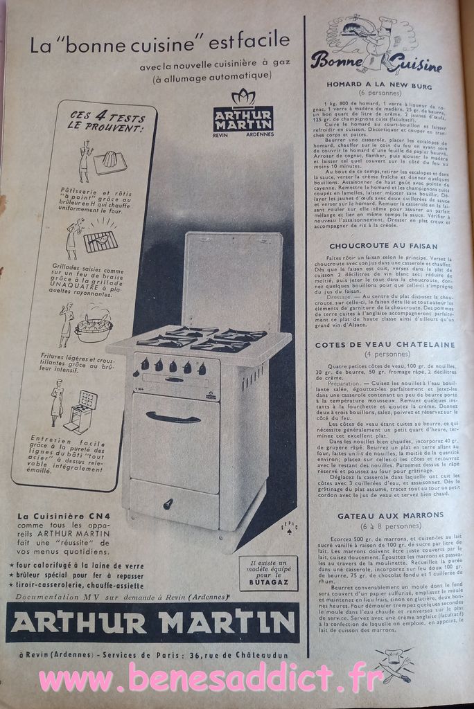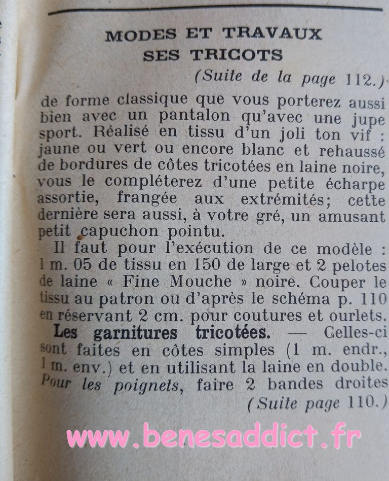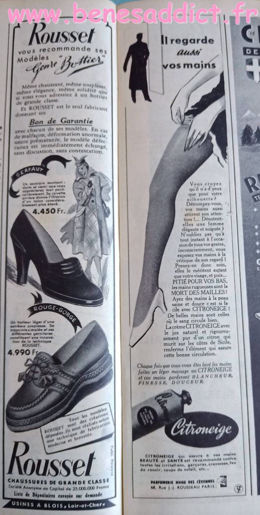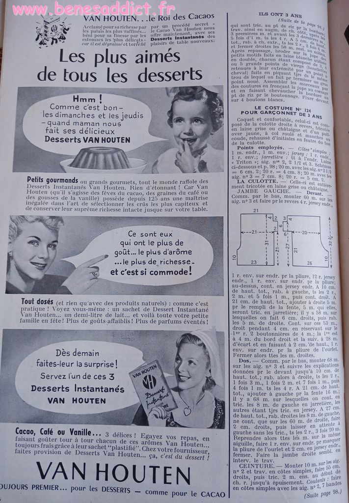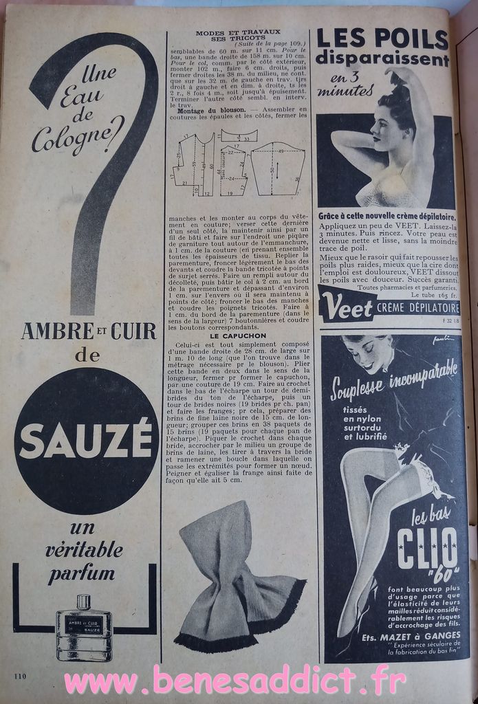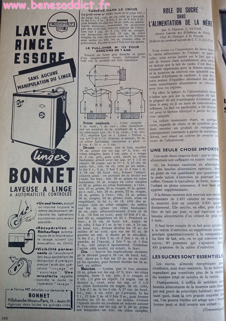 En attendant, aujourd’hui on part en 1950. Comme tous les Lundis avec de très nombreux patrons modèles tirés de Modes et Travaux de cette année là. Je craque pour les publicités que je sélectionne. Mais aussi pour les recettes traditionnelles et souvent astucieuses.