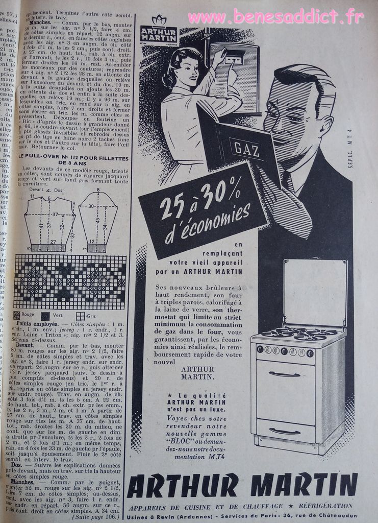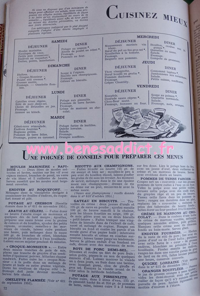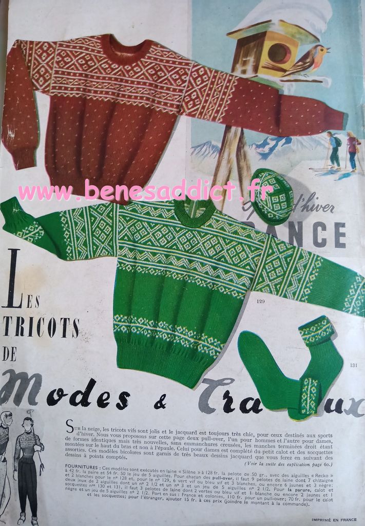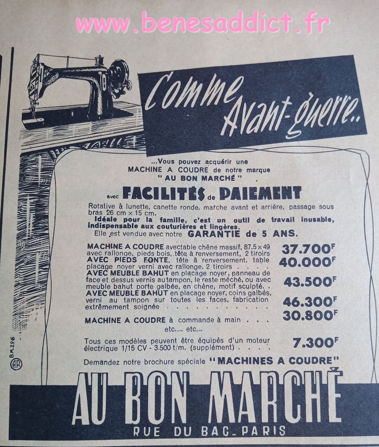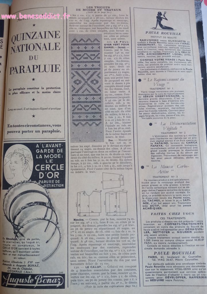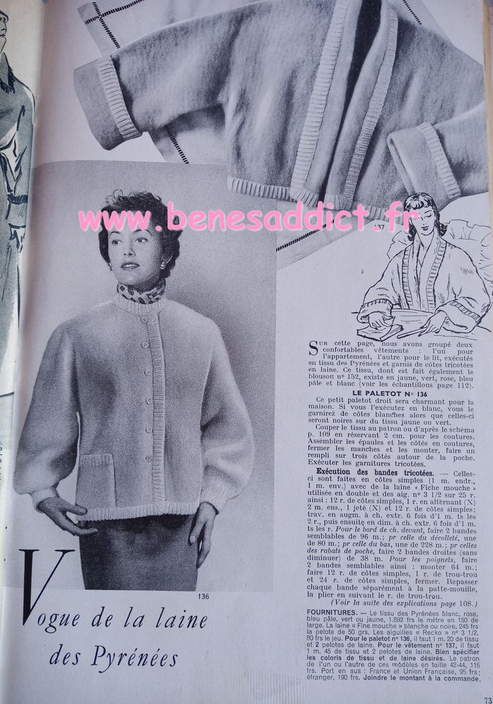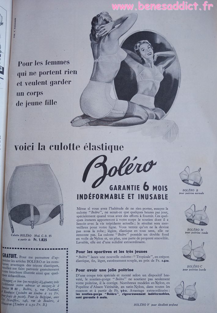 En attendant, aujourd’hui on part en 1950. Comme tous les Lundis avec de très nombreux patrons modèles tirés de Modes et Travaux de cette année là. Je craque pour les publicités que je sélectionne. Mais aussi pour les recettes traditionnelles et souvent astucieuses.