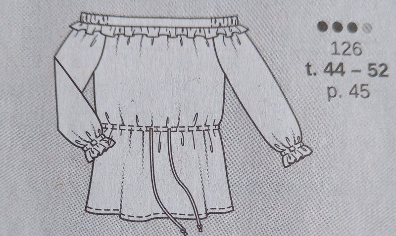 Voici un joli haut carmen en grandes tailles. Vous allez me dire encore un! Oui mais, celui ci est à manches longues terminée par un volant, grâce à un élastique. Celui ci permet de jouer sur la longueur de celles-ci. L’encolure est élastiquée uniquement sur la partie des épaules. En plus elle est bordée d’un fin volant. Un lien sous coulisse permet de jouer sur l’ampleur ou non de la blouse.