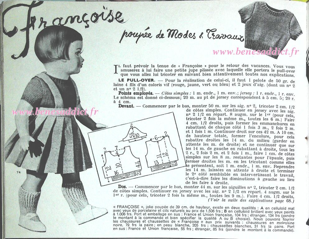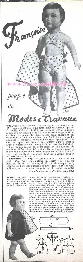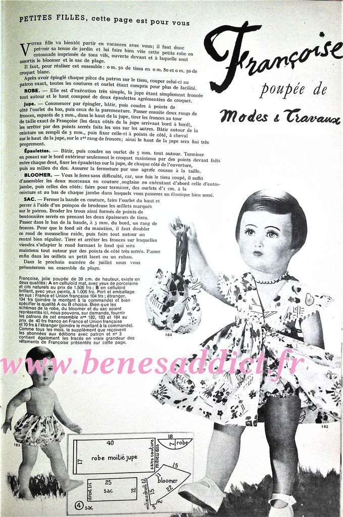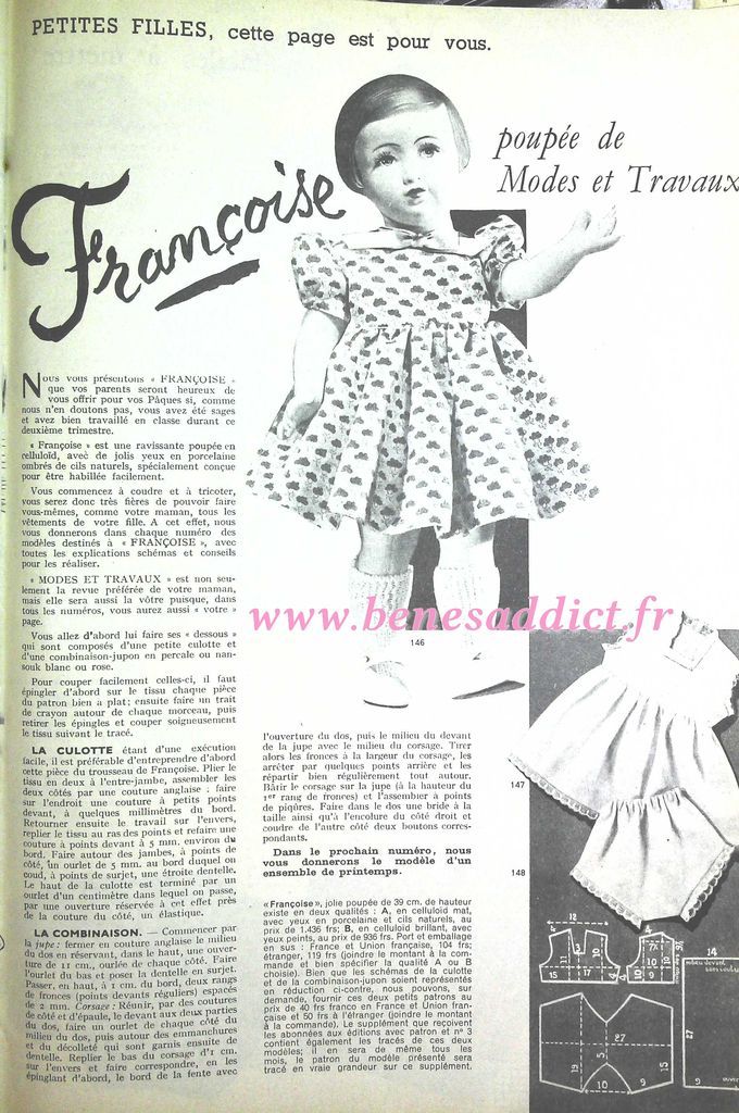 Donc, aujourd’hui nous partons au cœur des années 50 avec près de 90 patrons ou modèles. Dans tous les domaines des loisirs créatifs aussi bien, la couture, mais aussi le tricot, voire même le crochet et la broderie. Je suis certaine que vous trouverez votre bonheur. Pour les fans des poupées, vous trouverez un superbe patron estivale pour habiller Françoise.