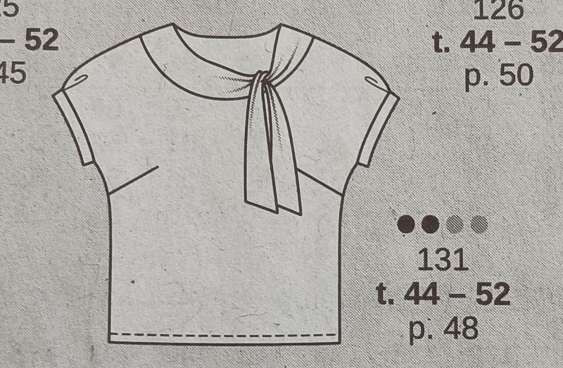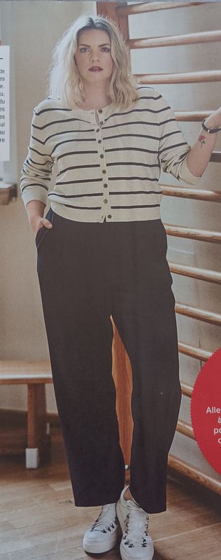 J’adore ce haut relativement simple, et en grandes tailles. Le point de mire est ce parement à l’encolure qui se noue.