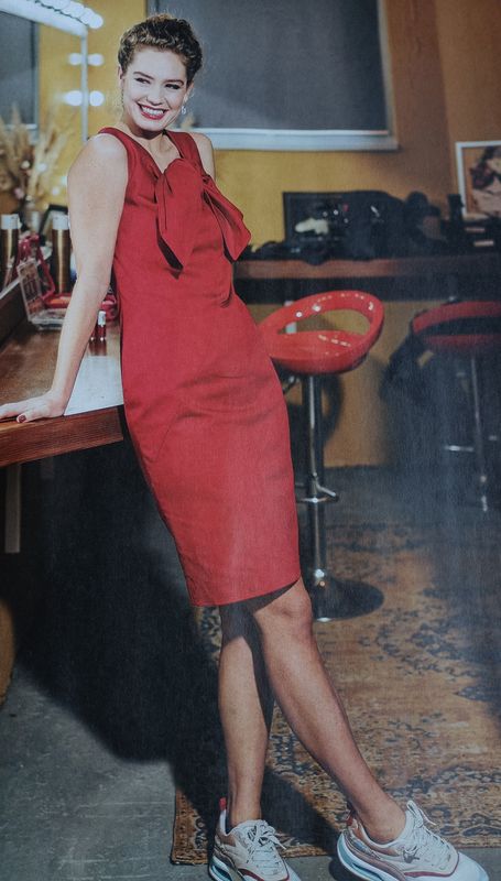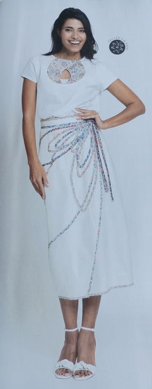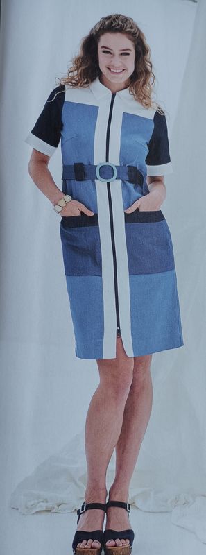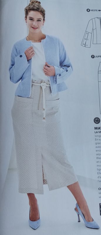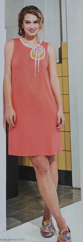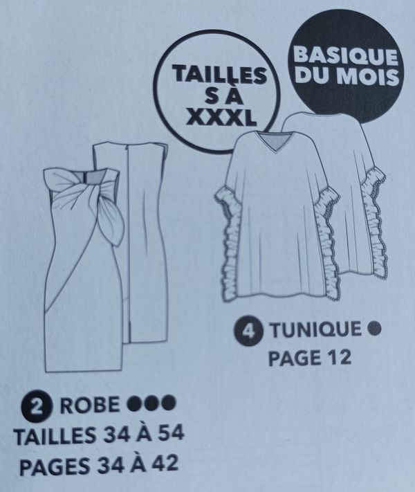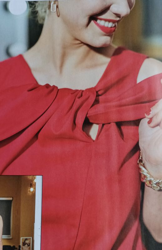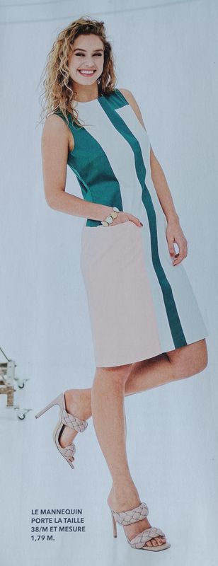 J’adore cette robe droite ajustée ! Elle est superbe, réalisée dans 2 couleurs différentes, mais aussi unie. Son détail qui ne passe pas inaperçu, c’est ce joli nœud ! En plus dans la revue, nous avons un tuto pour réaliser ce point un peu compliqué.
