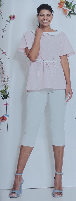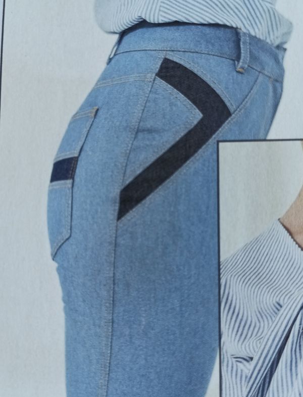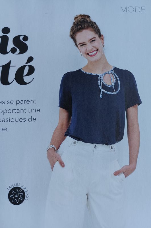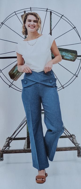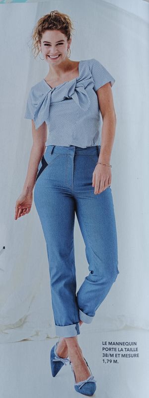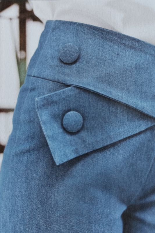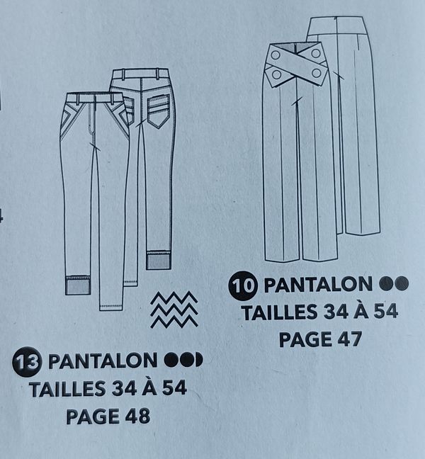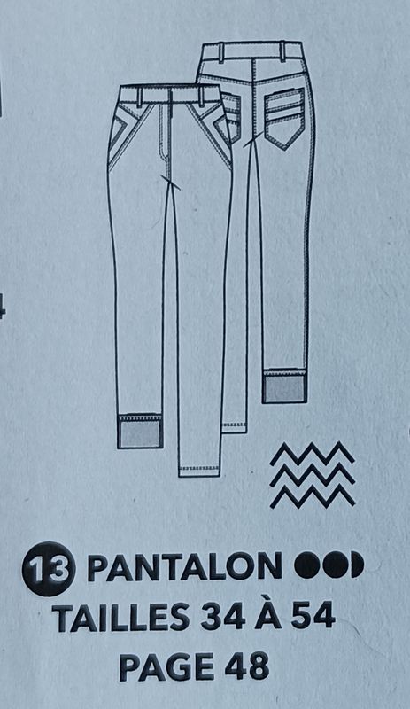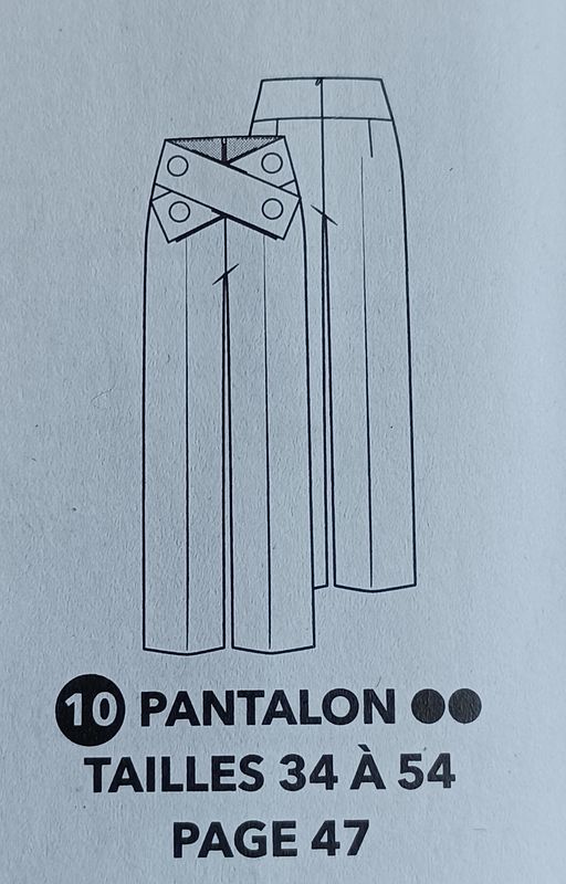 Alors pour ce pantalon, je suis divisée, j’aime beaucoup l’idée de ces pattes de boutonnage qui sont fausses bien sûr. Elles abaissent la taille en V. Je trouve qu’elle sont trop grosses en petites tailles. cela convient mieux pour une grande taille.