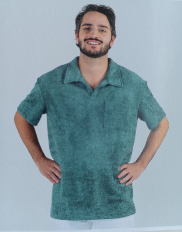 Toujours fan lorsque nous trouvons un patron pour homme, un peu moins du choix du tissu de la rédaction. Il s’agit d’un joli polo, simple, mais sans boutons ni boutonnage. Je le trouve sympathique à faire et à refaire dans tout un tas de tissus différents !
