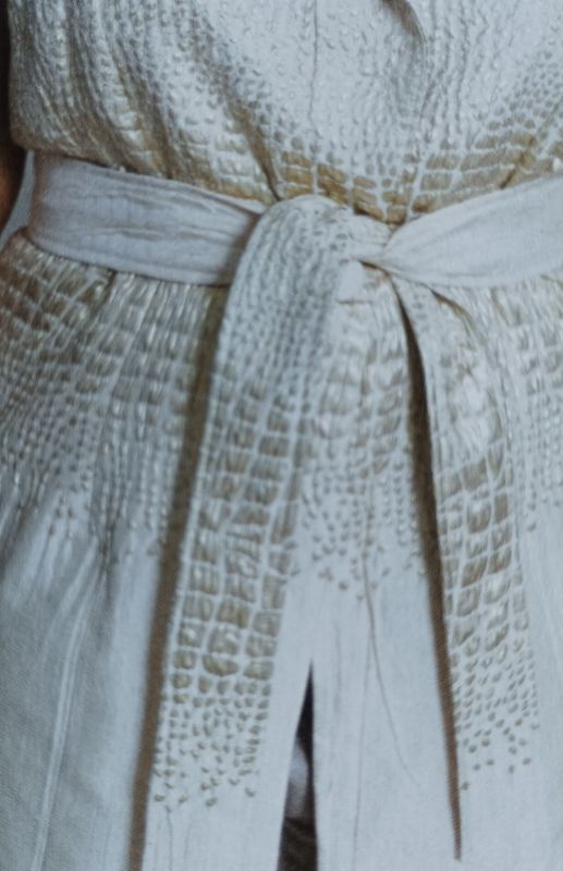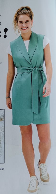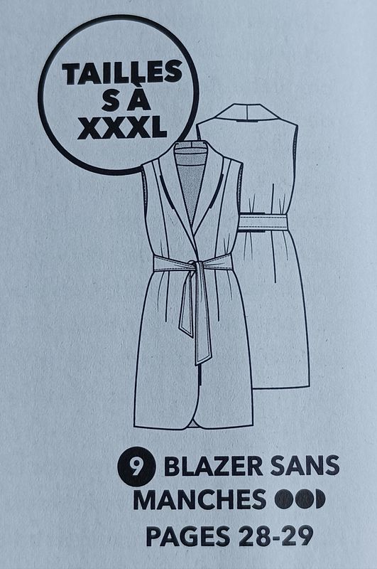 Ce blazer sans manches est sympa dans un tissu texturé comme sur le mannequin curvy. Il est noué à la taille à l’aide d’une ceinture. L’ourlet du bas est arrondi sur le devant, le col est de forme châle. Bref, un modèle classique sera toujours détonnant dans un tissu original !