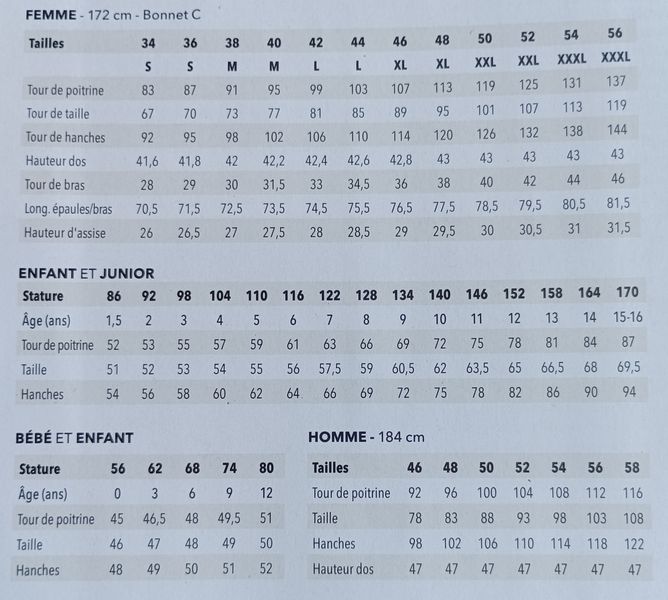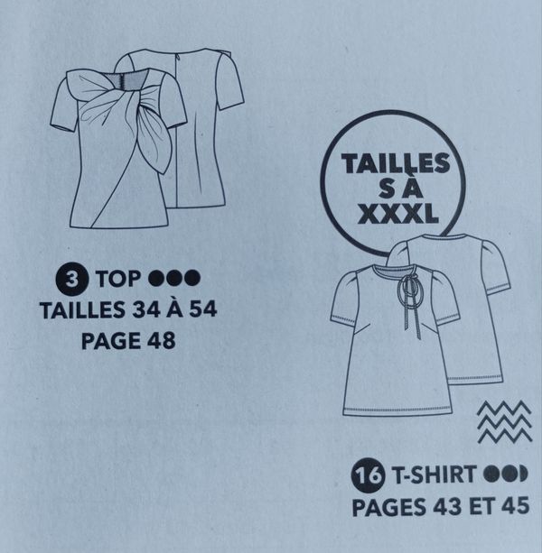 La seule revue qui propose la totalité de ses patrons dans le même grand panel de tailles. Pas moins de 11 tailles différentes allant du 34 au 54!