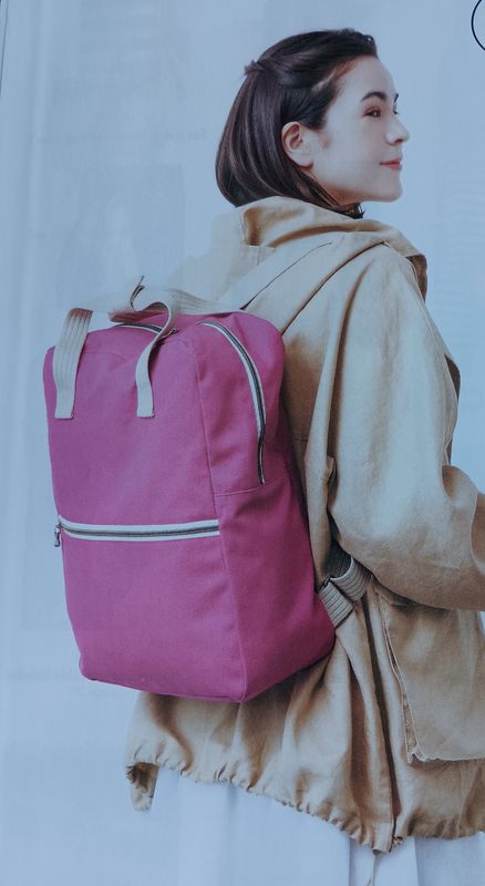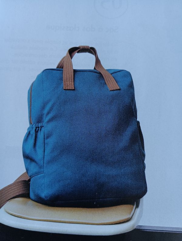 J’adore ce sac à dos rectangulaire, on peut y mettre beaucoup de choses ! Une petite poche sur le devant, pour garder le plus important. Deux poignées permettent de le porter facilement à la main.