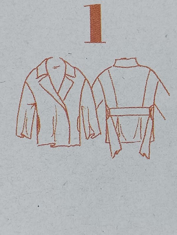 J’aime beaucoup cette veste qui se croise sur le devant. Elle possède un col châle, des poches prises dans la couture de côté. La veste se ferme à l’aide d’une ceinture.