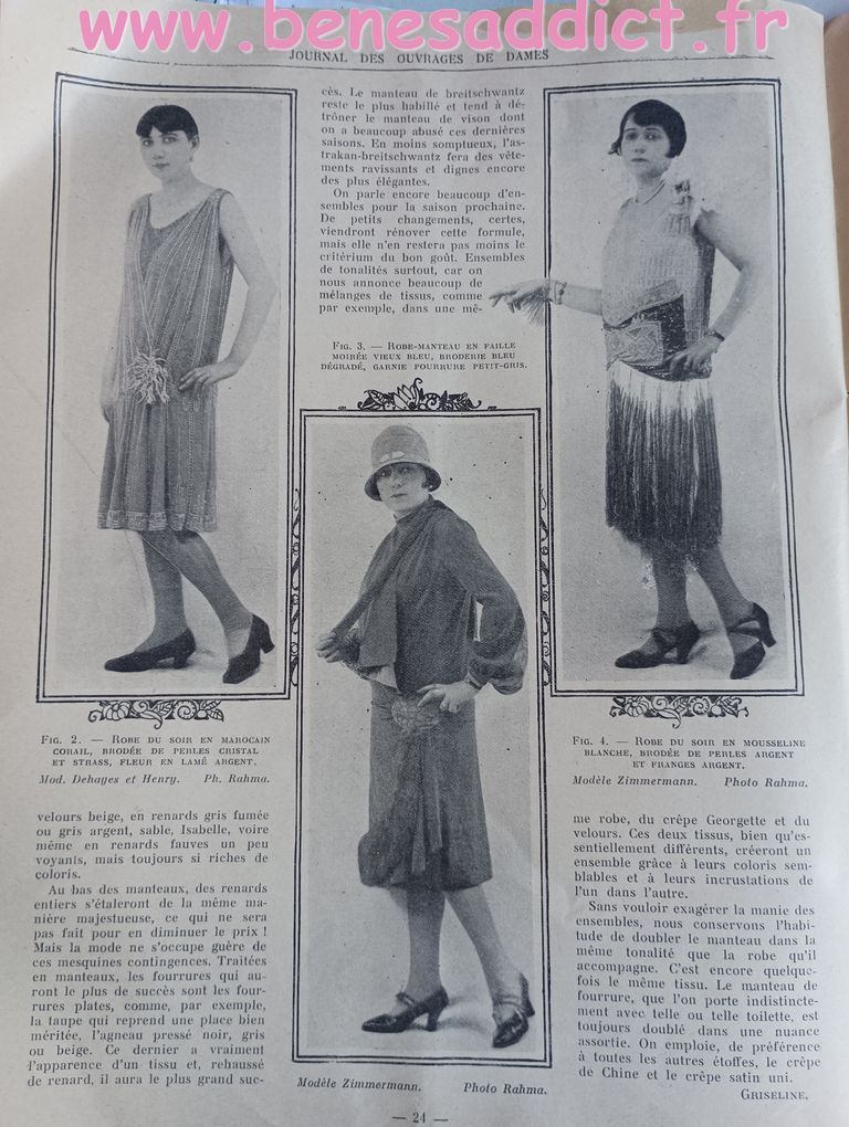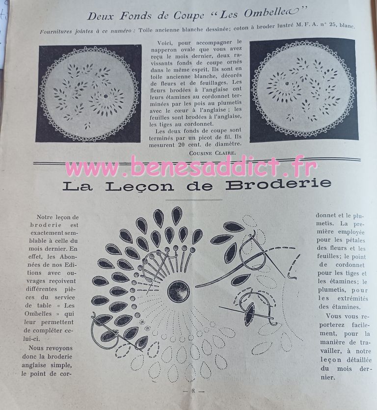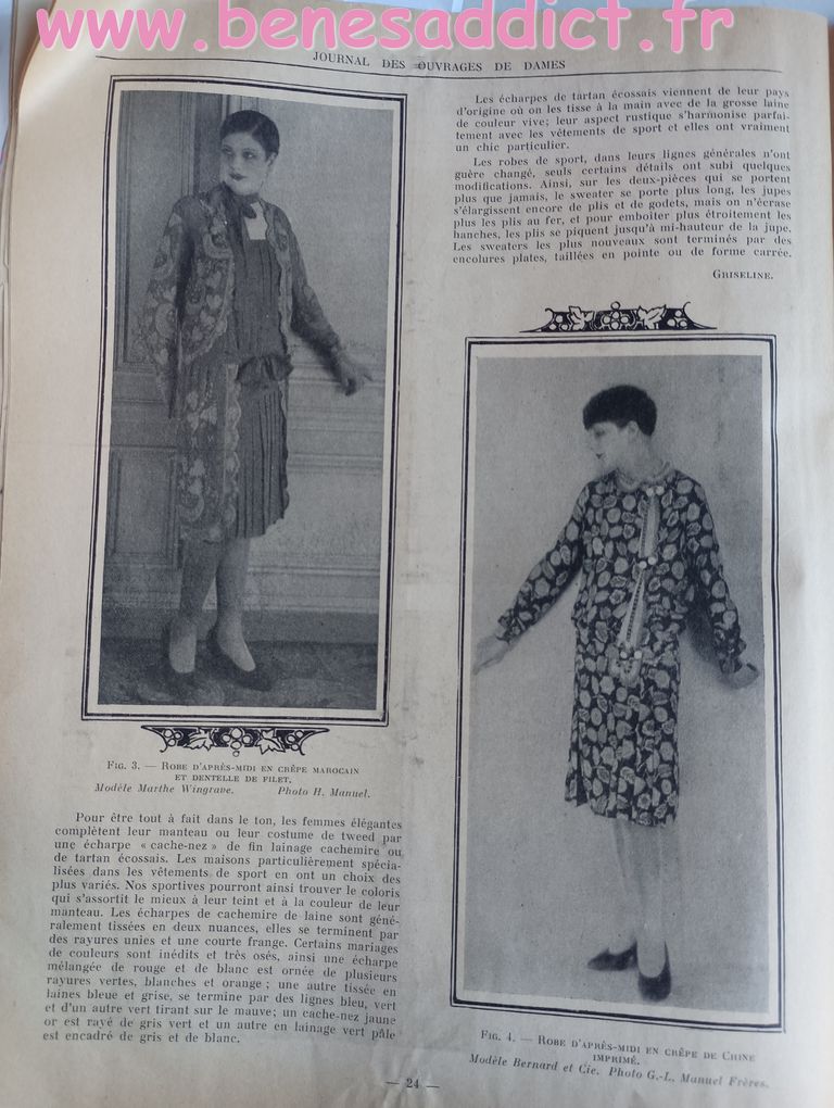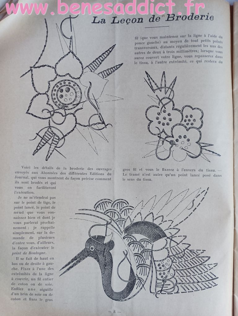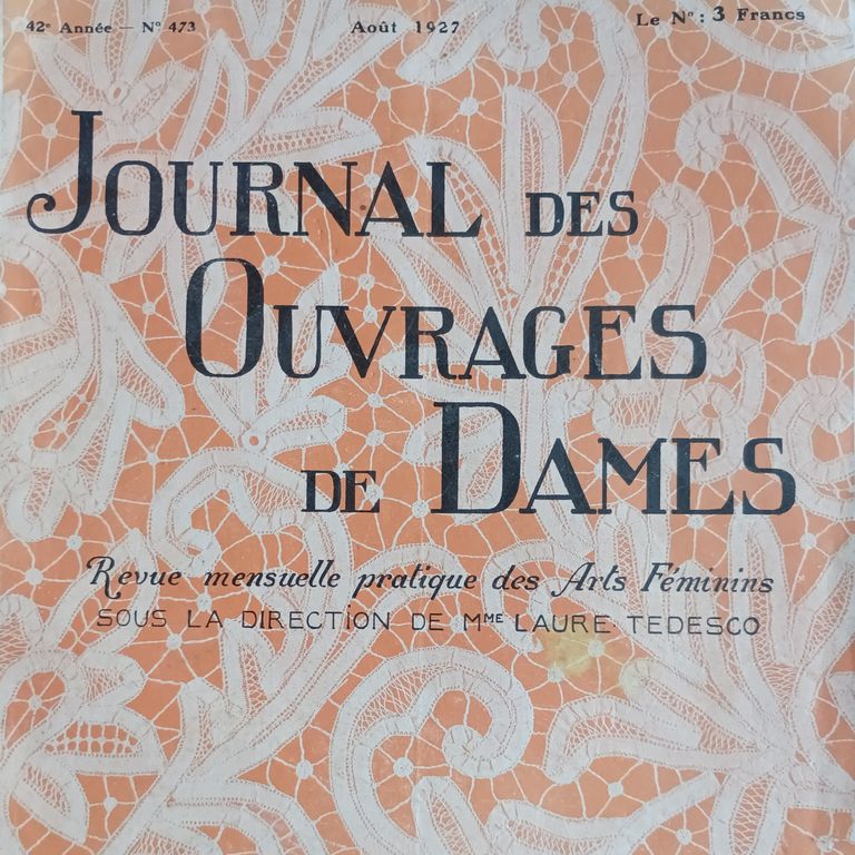 Bonjour, bonjour ! Une nouvelle semaine commence. Pour cette occasion, je vous présente une revue dont je viens de recevoir quatre numéros. Elle s’appelle « Journal des Ouvrages de Dames » de 1927. Ce sont les premiers que je possède. On y parle, broderie, tricot, crochet, mais aussi leçons de styles et de mode. Elle venait par abonnement avec des patrons de broderies décalquables, mais aussi les tissus déjà imprimés prêts à être brodés !