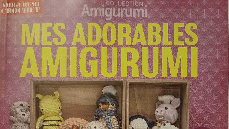 Ce petit bandeau rouge est en haut à gauche, il nous rappelle bien que nous sommes en présence d’une revue pour amigurumi au crochet. Je ne sais pas si au tricot, ils portent le même nom… Vous savez vous ?