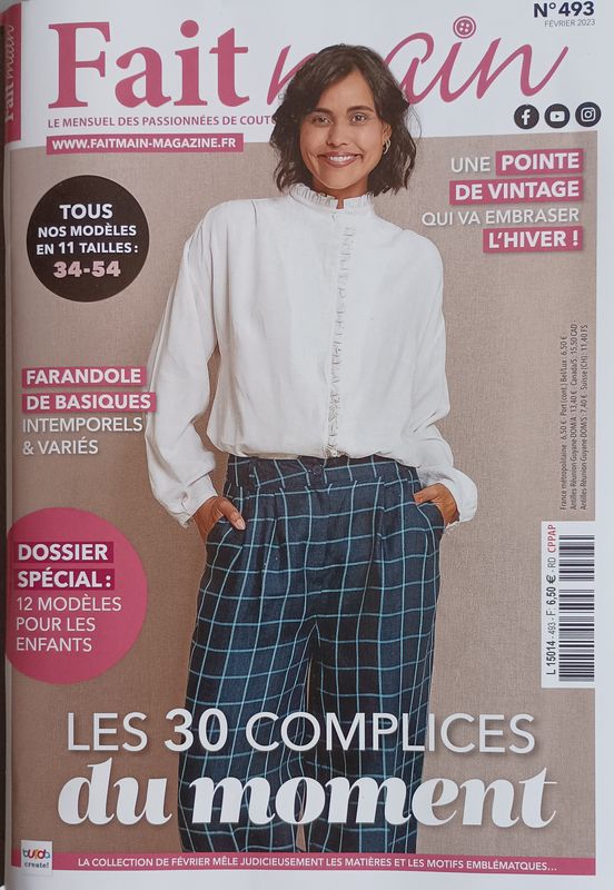 Magazine Fait Main n°493 Tous les Modèles du 34 au 54, + 12 Patrons Enfants