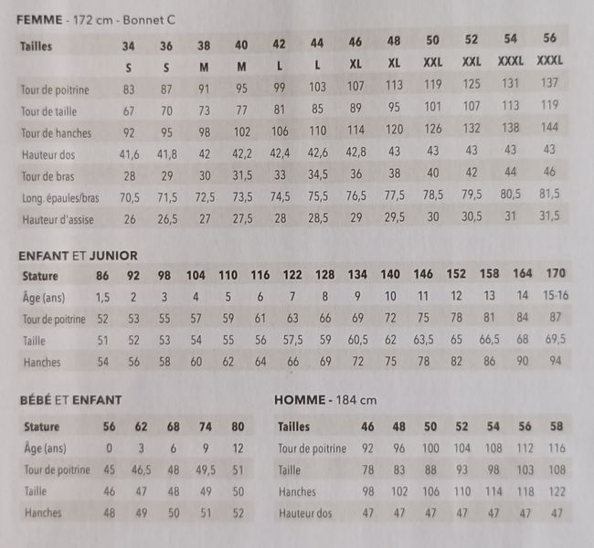 Ce que je peux l’aimer ce macaron, pas de discrimination entre les rondes ou les minces. En effet, la totalité des patrons pour femmes vont du 34 au 54 !