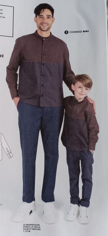 Un patron pour homme, c’est toujours appréciable d’en trouver, je me trompe ? Il s’agit d’une chemise de coupe classique, avec un col officier et deux empiècements dos et devant jusqu’à hauteur de la poitrine. C’est le patron parfait pour passer les restes de tissus. Les manches sont longues avec des fentes capucin.