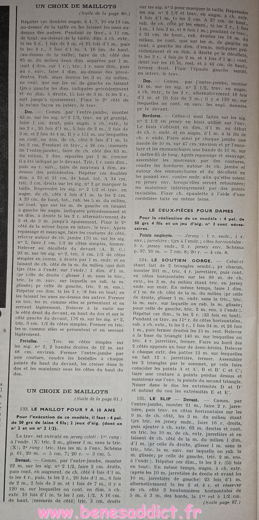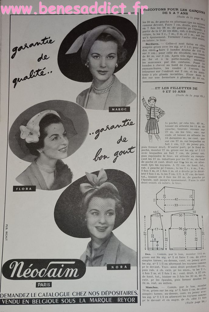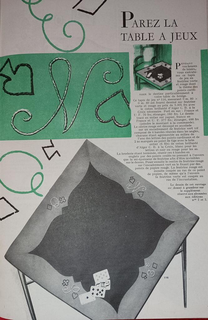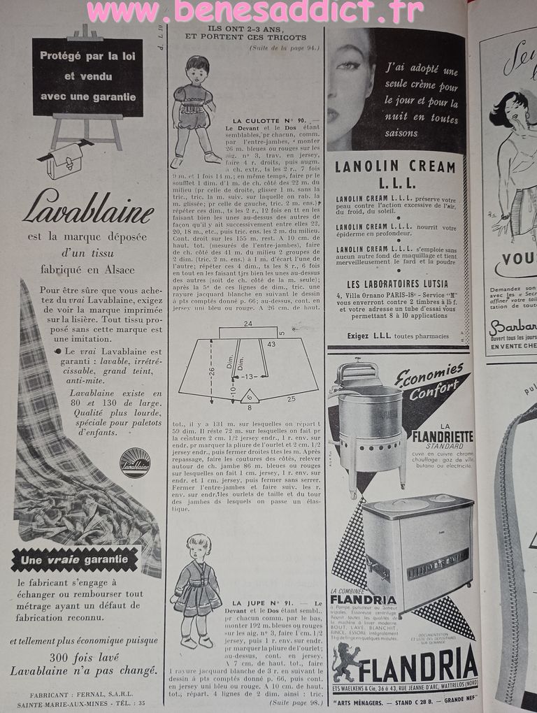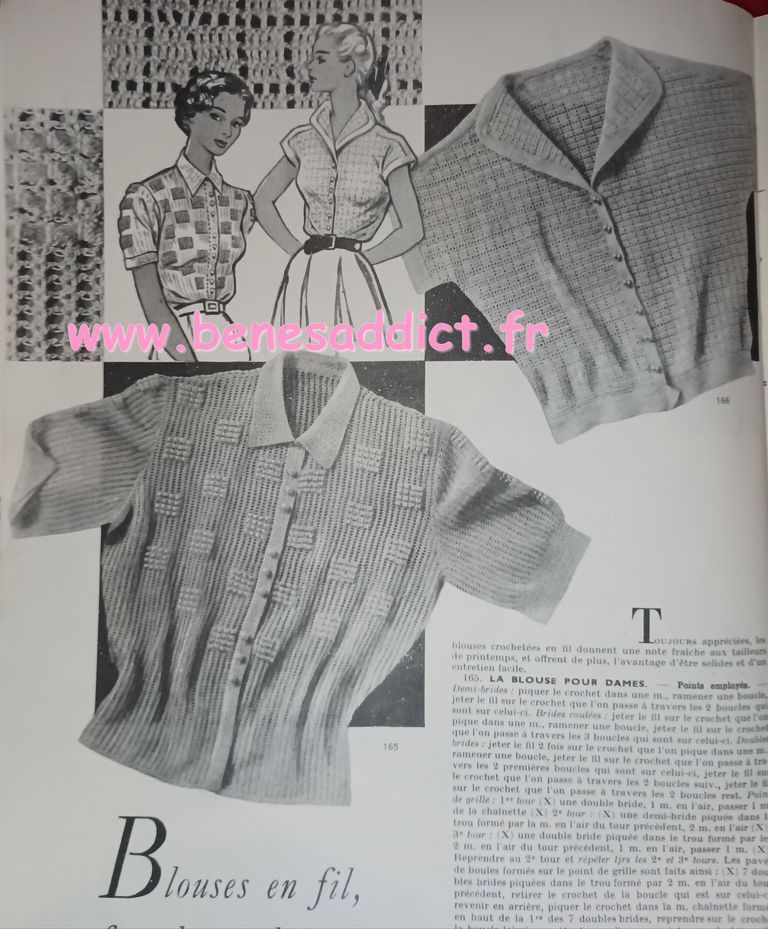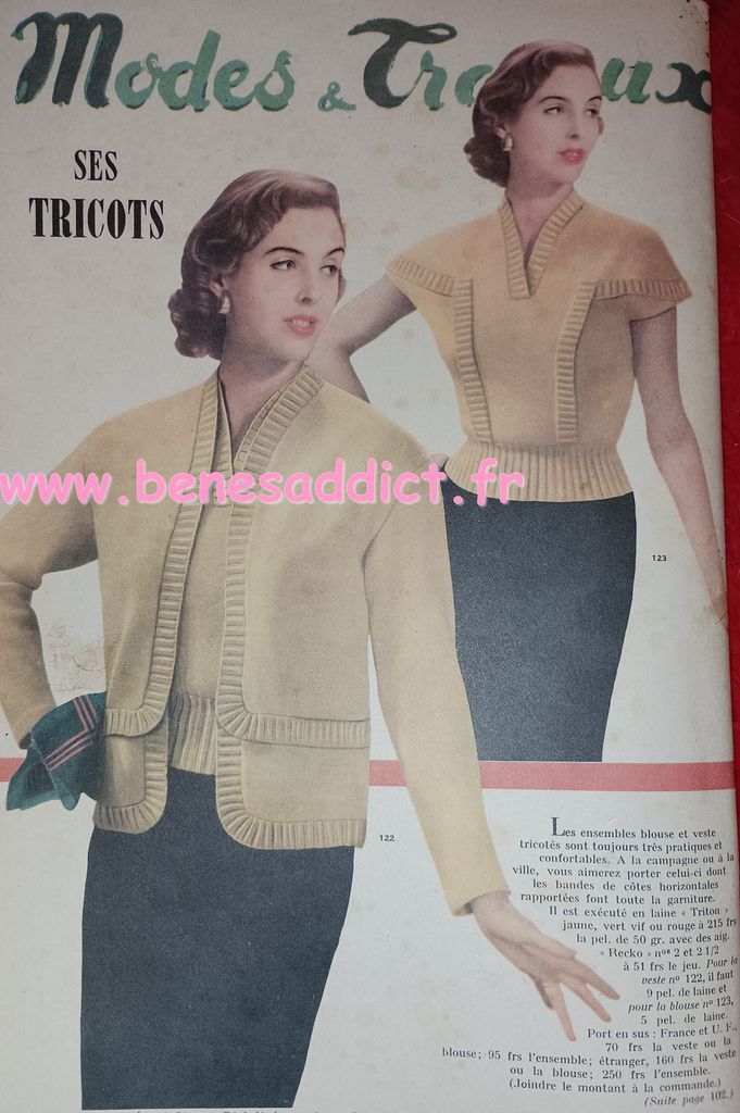 Vous trouverez des morceaux choisis de « Modes et Travaux » de 1951. C’est une revue particulièrement complète, ainsi, elle aborde légèrement les problèmes auxquels les femmes étaient confrontées. Mais surtout, elle contient toujours des loisirs créatifs. Que ce soit de la couture, mais aussi du tricot, et même du crochet qui se fait cependant de plus en plus rare. Beaucoup de publicités dans tous les domaines qui pouvaient intéresser la gent féminine.