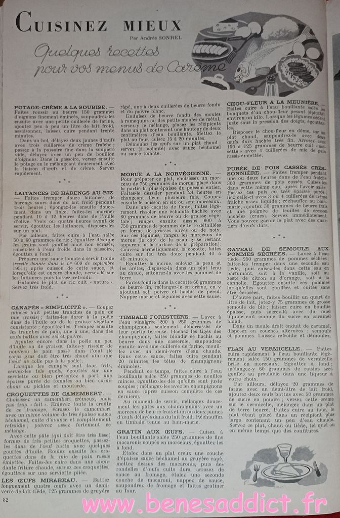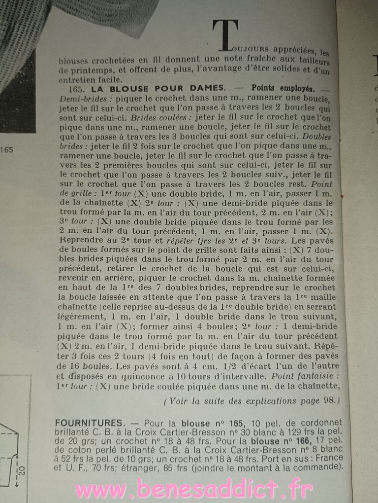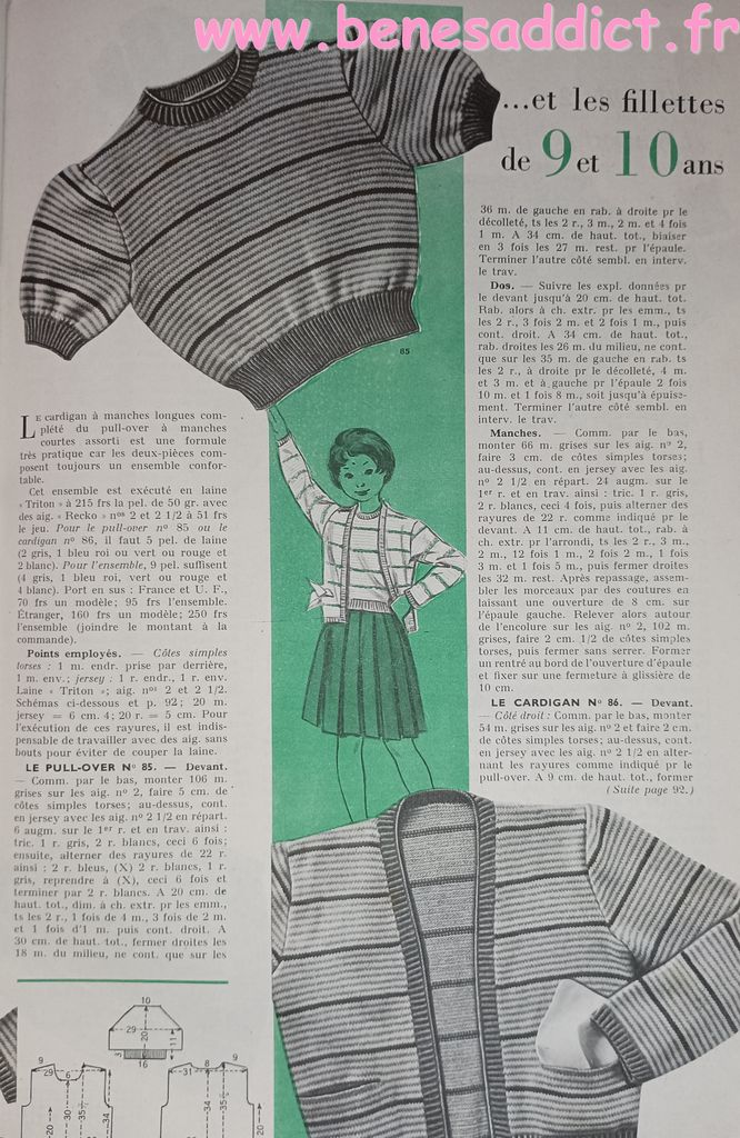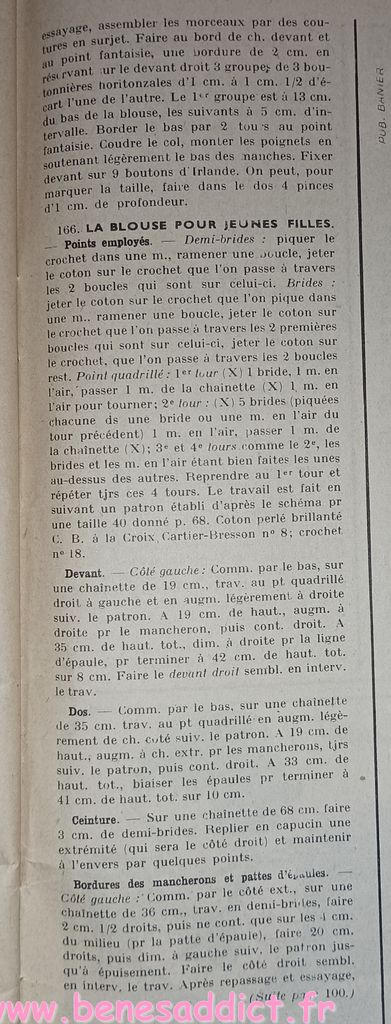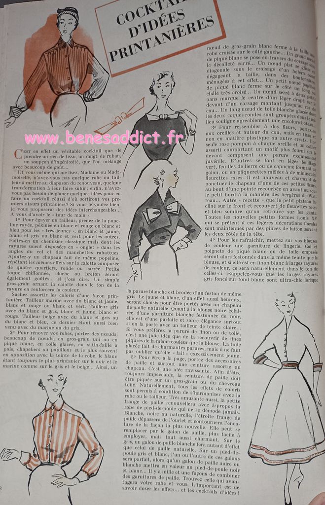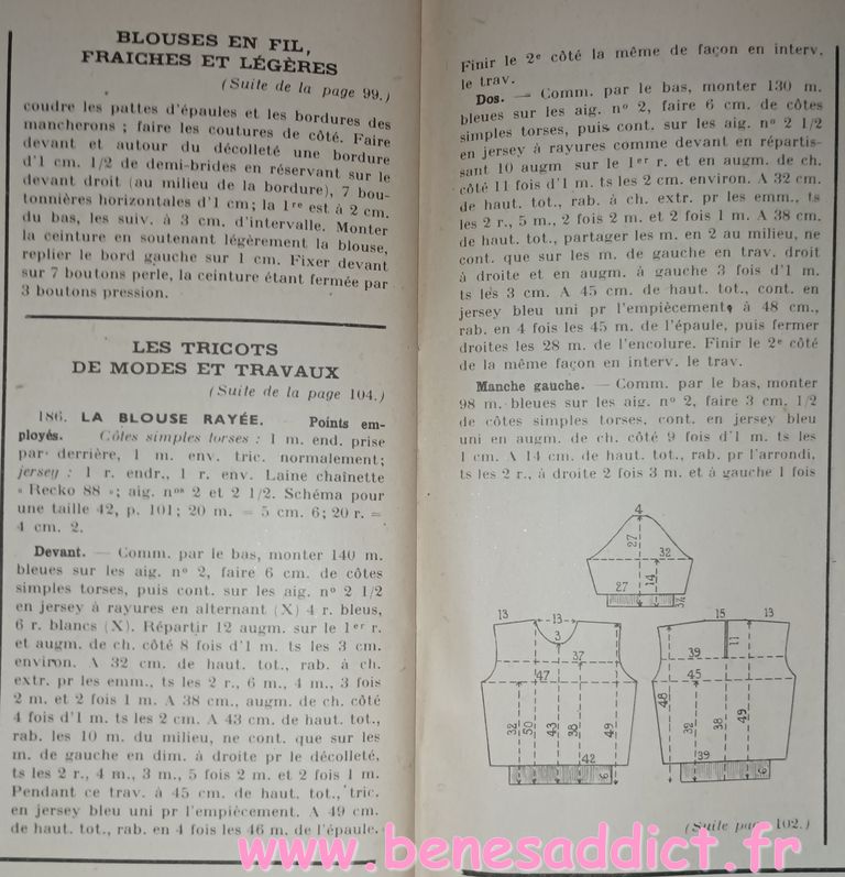 Vous trouverez des morceaux choisis de « Modes et Travaux » de 1951. C’est une revue particulièrement complète, ainsi, elle aborde légèrement les problèmes auxquels les femmes étaient confrontées. Mais surtout, elle contient toujours des loisirs créatifs. Que ce soit de la couture, mais aussi du tricot, et même du crochet qui se fait cependant de plus en plus rare. Beaucoup de publicités dans tous les domaines qui pouvaient intéresser la gent féminine.