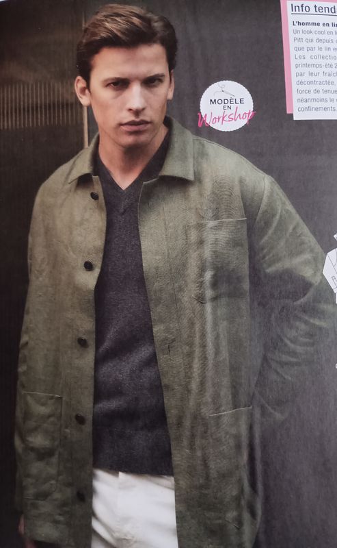 En plus du tutoriel en vidéo, nous avons, comme avant, 2 workshops, qui sont en fait des pas à pas très complets. Il s’agit d’un blouson, et d’une veste chemise pour homme. Nous apprenons donc suite à cette lecture que nous aurons au moins un patron pour homme.