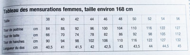 Ce petit macaron est à mon sens toujours utile. En un clin d’œil, on sait si notre taille est dans la revue ou pas et donc si elle mérite qu’on s’attarde. Ici les patrons vont du 36 au 48. La totalité des patrons n’est pas dans ce panel de tailles, malheureusement…