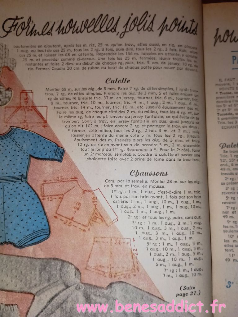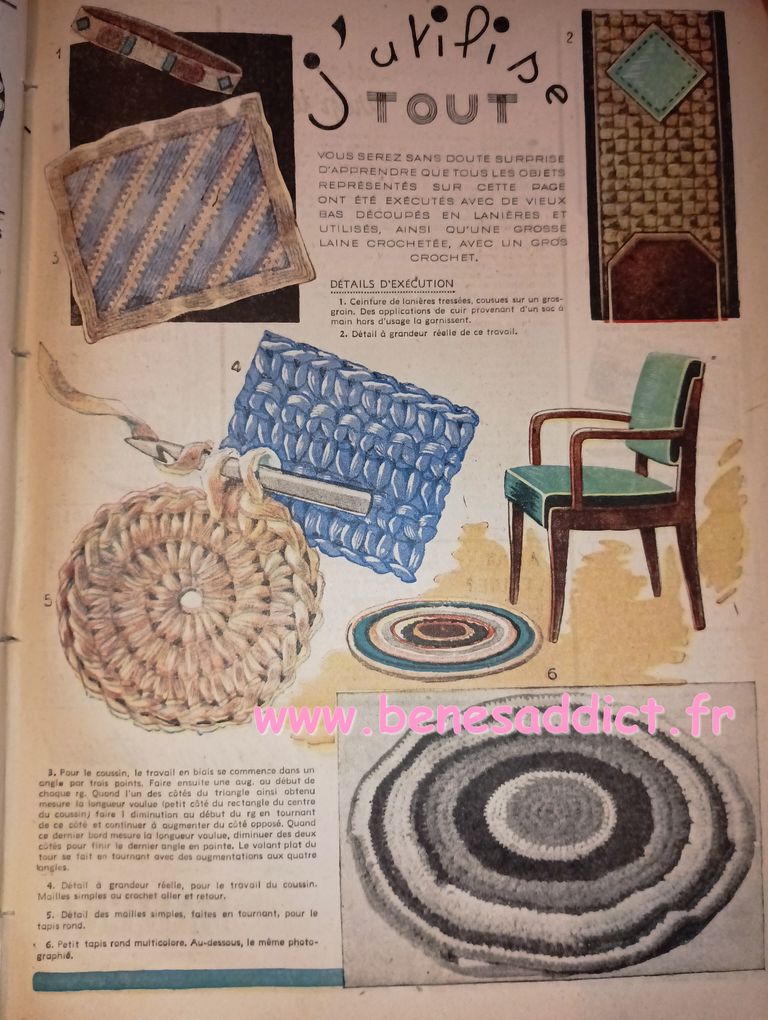 Il y a ainsi plus de couture que d’habitude en cinq numéros, car c’était une revue qui paraissait toutes les semaines. Mais aussi du tricot, tout comme du bricolage et quelques réclames de l’époque.
