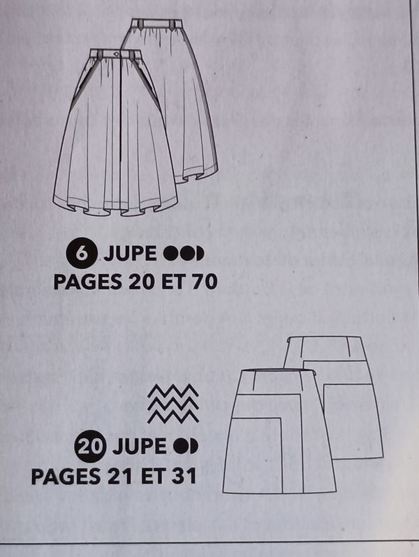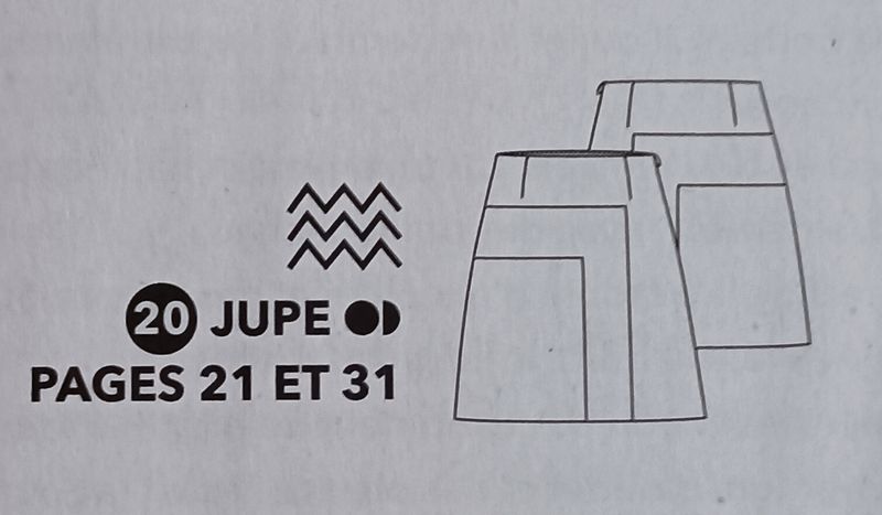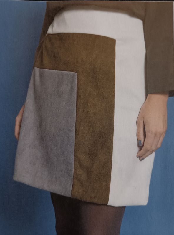 Généralement, je ne suis pas fan des jupes trapèze. Mais ce modèle m’a tapé dans l’œil. La jupe en elle-même est toute simple, avec deux pinces dos, et devant, ainsi qu’une fermeture à glissière sur le côté. Le détail qui fait la différence ce sont ces pièces géométriques, et le style est encore plus original avec plusieurs couleurs !