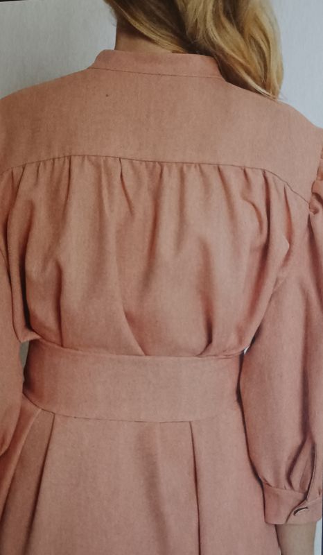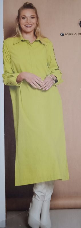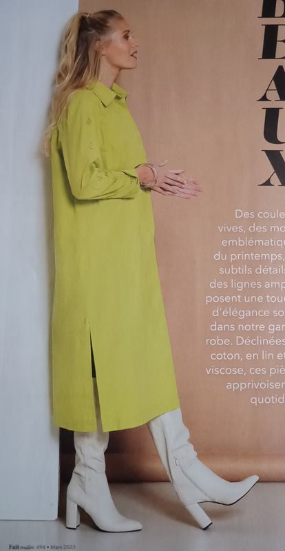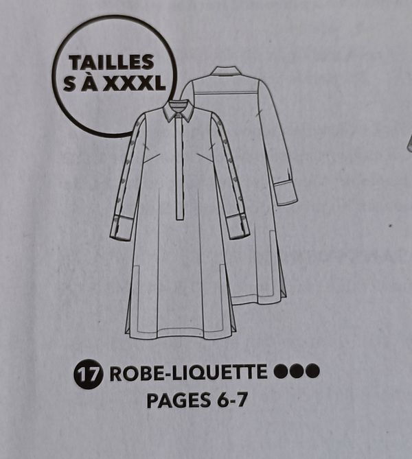 Dernier coup de cœur pour cette robe « liquette », je déteste ce mot ! C’est une robe chemise, mais, elle n’est pas entièrement ouverte sur le devant. Elle n’est pas prés du corps. Le gros détail se trouve sur les manches qui sont garnies d’une patte de boutonnage et de boutons sur toute leur longueur.