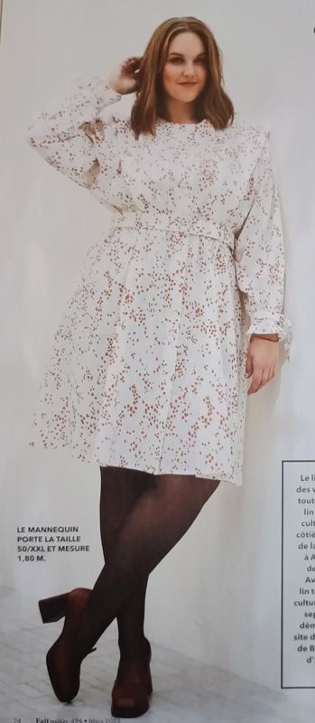 J’adore Fait Main pour ce macaron. La totalité des patrons vont du 34 au 54. C’est la seule revue à le faire, même chez « My Image #26 » Tous les Patrons vont du 34 au 52 . Je me répète surement, mais c’est tellement appréciable de voir ce panel de tailles. En plus nous avons même des mannequins curvy!