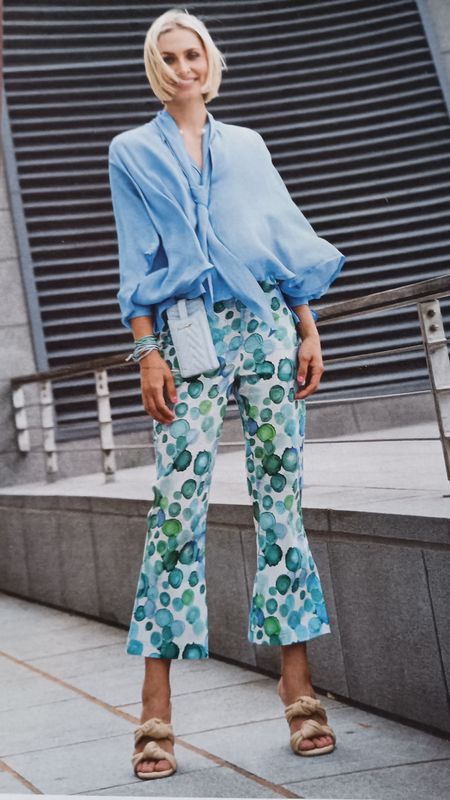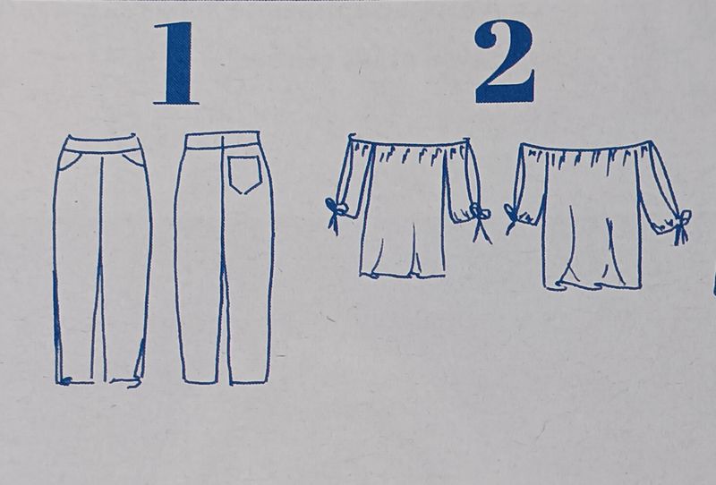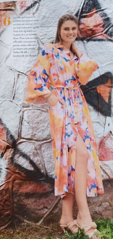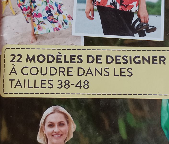 Ce gros bloc titre nous en apprend plus sur ce que contient la revue. D’amples vêtements féminins, tels que des chemisiers, jupes ou robes, avec de jolis tissus imprimés ! Mais aussi des pantalons et des blazers.