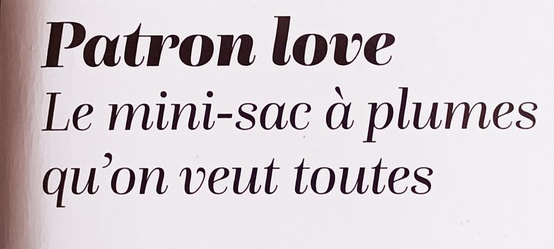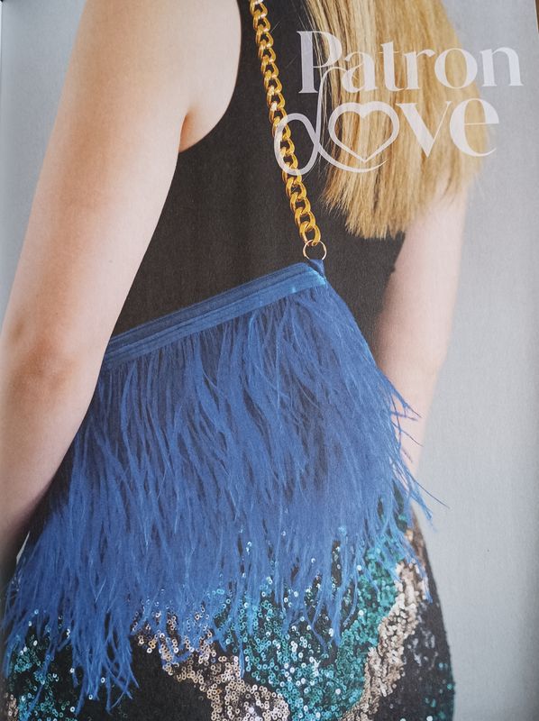 Le patron love est un modèle de sac avec un ruban de plumes. C’est superbe, mais si j’en réalise un, mes chats seraient capables de me le piquer !