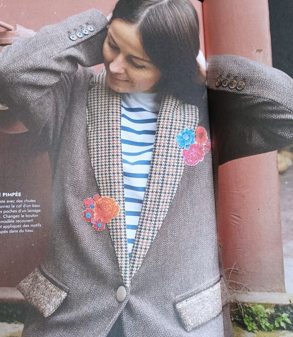 Ce joli macaron en forme de fleur nous informe que nous avons 13 patrons dans cette revue. Mais surtout qu’ils sont à taille réelle. Mine de rien, c’est toujours préférable plutôt que d’avoir à l’imprimer au format PDF ou pire le retracer.