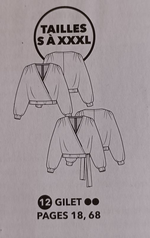 La variante, transformée en gilet, me plait beaucoup. Il s’arrête à la taille, noué ou boutonné selon nos goûts. Les poignets sont élastiqués.