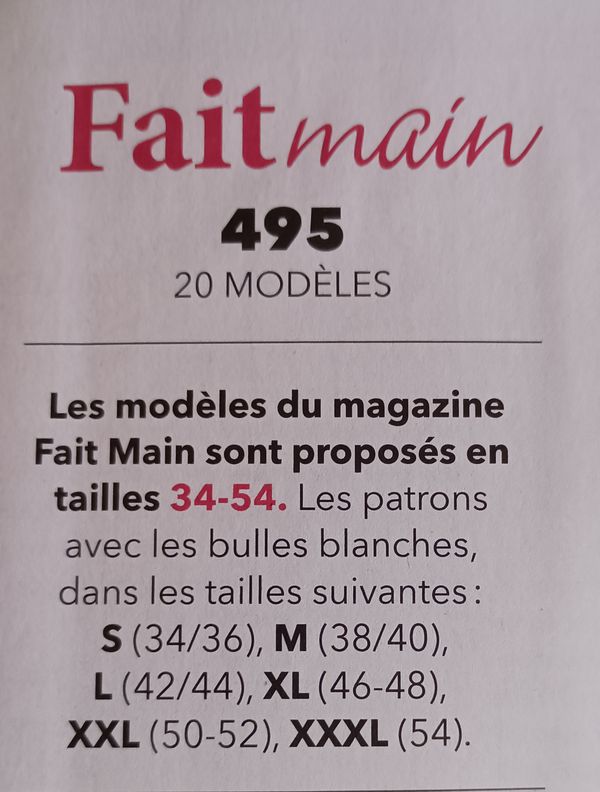 Nous avons pas moins de onze tailles pour chaque revue ! Ils sont les seuls à proposer cette amplitude de tailles. Une autre revue le propose, mais avec une grande taille en moins Belle Amplitude de Tailles Chez « My Image #26 » avec Tous les Patrons du 34 au 52
