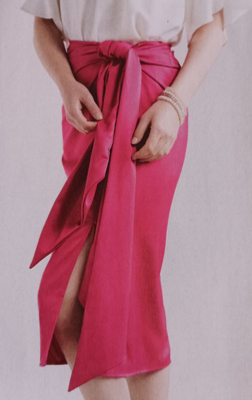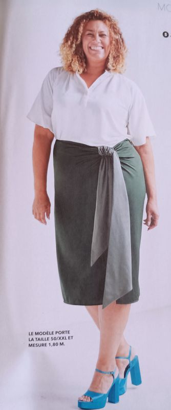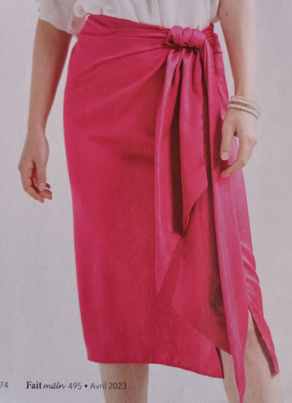 J’adore cette jupe, même si mon mari n’est pas convaincu. Je lui trouve un petit air vintage avec son nœud et le drapé sur le devant. Elle est fendue afin d’être plus confortable pour marcher.