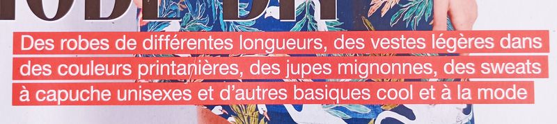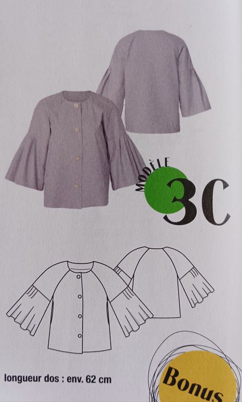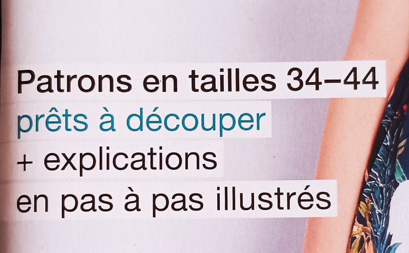 Ce bandeau nous rappelle que la totalité des patrons proposés sont prêts à être découpés directement sans passer par la case calque. Mais en plus tous modèles sont dans le même intervalle de tailles, plus précisément du 34 au 54.