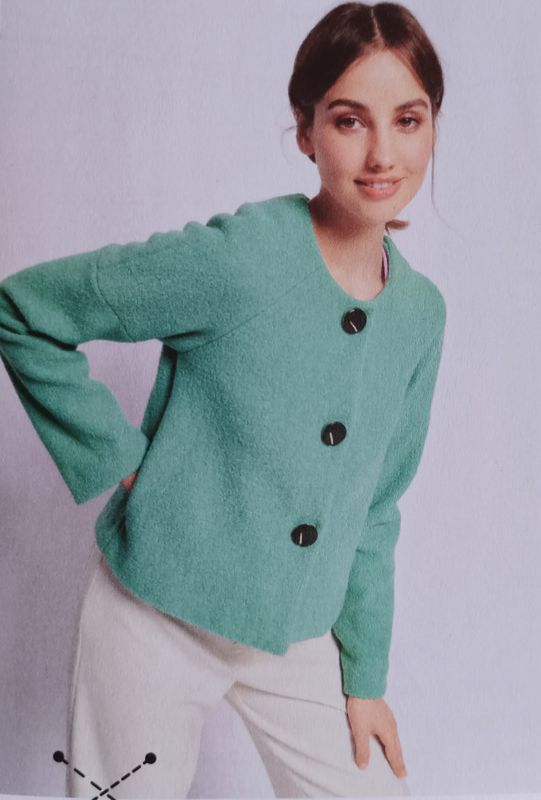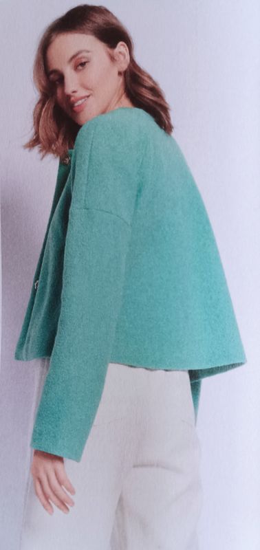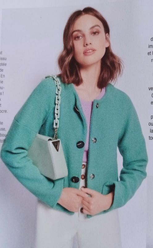Je trouve que les manches raglans sont très confortables, et ce petit modèle de veste en possède. De plus, nous avons une couture façon manches courtes qui permet de jouer avec les couleurs.