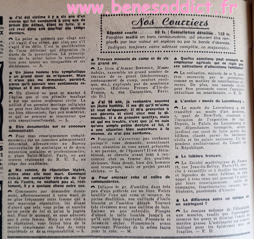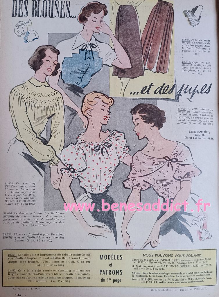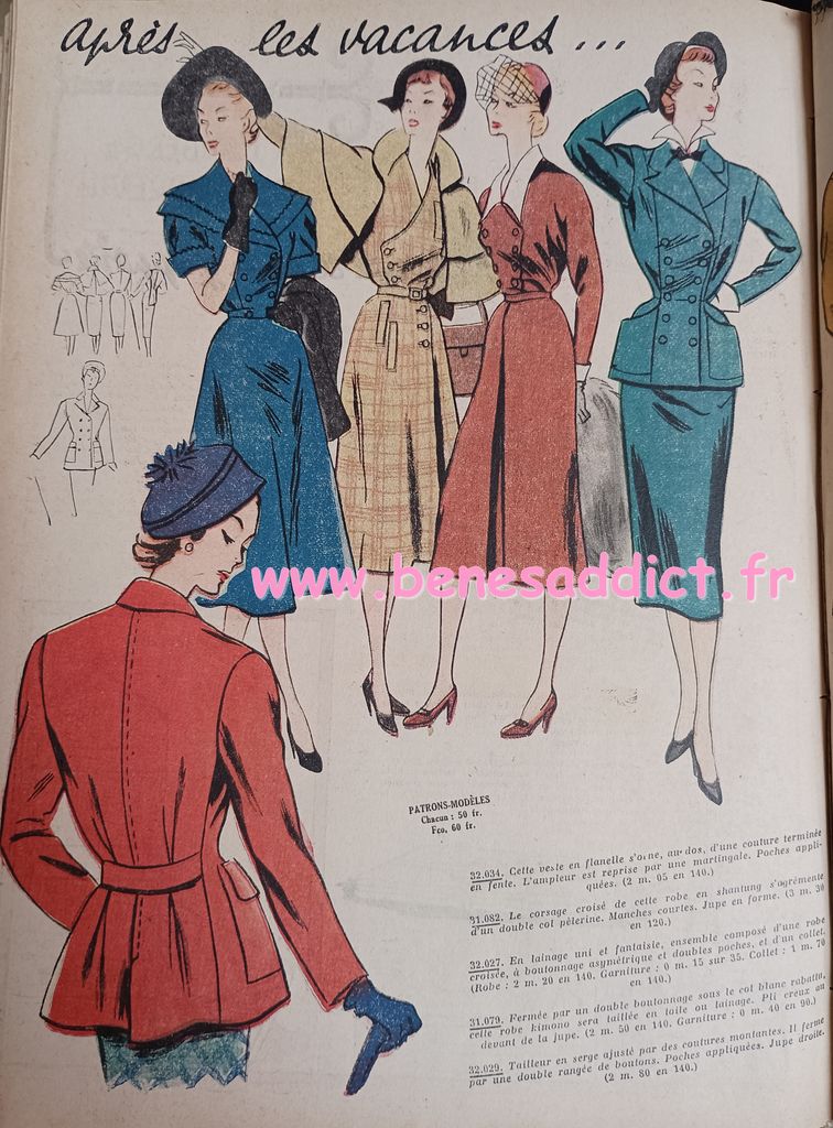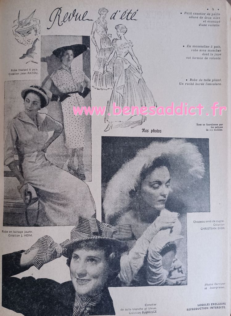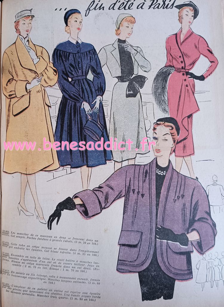 Bonjour, bonjour ! Voici notre rendez-vous hebdomadaire pour les amoureux des Modes d’ antan. Pour quelques instants, vous allez voyager dans le passé. Plus précisément toujours en 1950, avec plusieurs numéros de la revue « Le Petit Echo de la Mode ». Cet ouvrage paraissait chaque semaine. C’était un moment que les femmes et jeunes filles attendaient avec impatience. En effet, étaient présents de nombreux patrons de couture, mais aussi de tricot, même de crochet,ainsi qu’une multitude de recettes de cuisine et d’astuces pour la vie de tous les jours. Tout comme le courrier des lectrices qui abordait tous les problèmes de société féminins, jeunes ou moins jeunes. L’ancêtre des forums d’aujourd’hui.