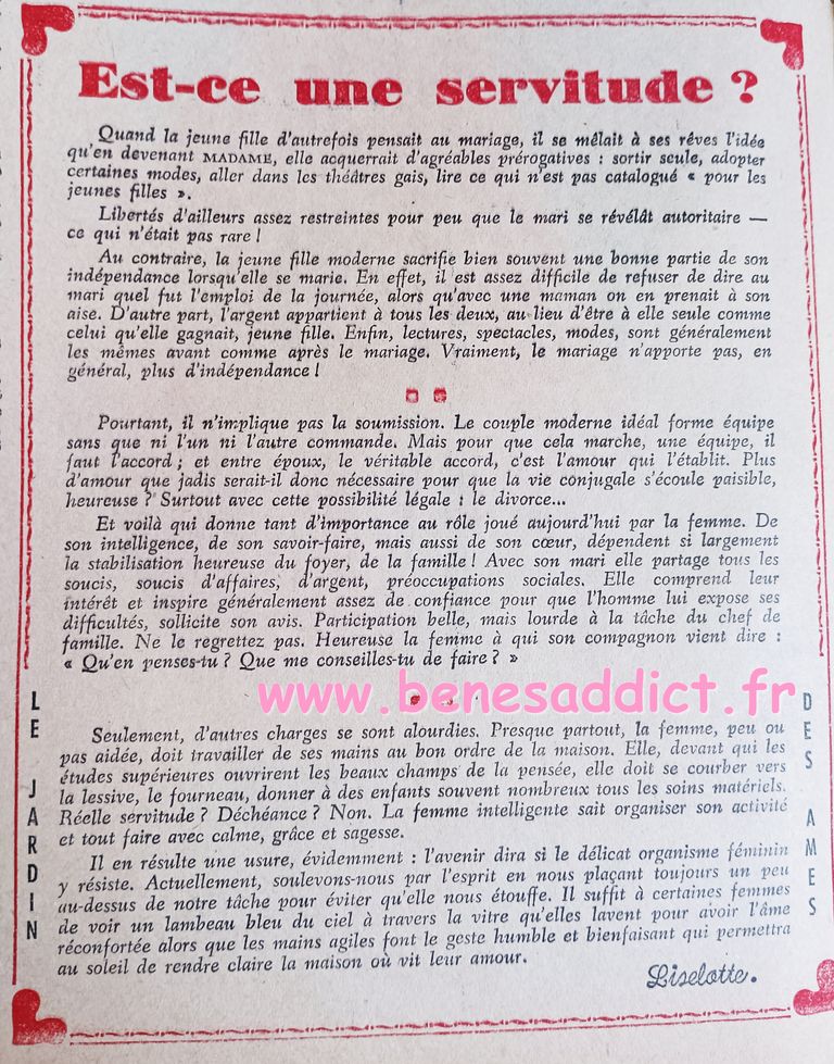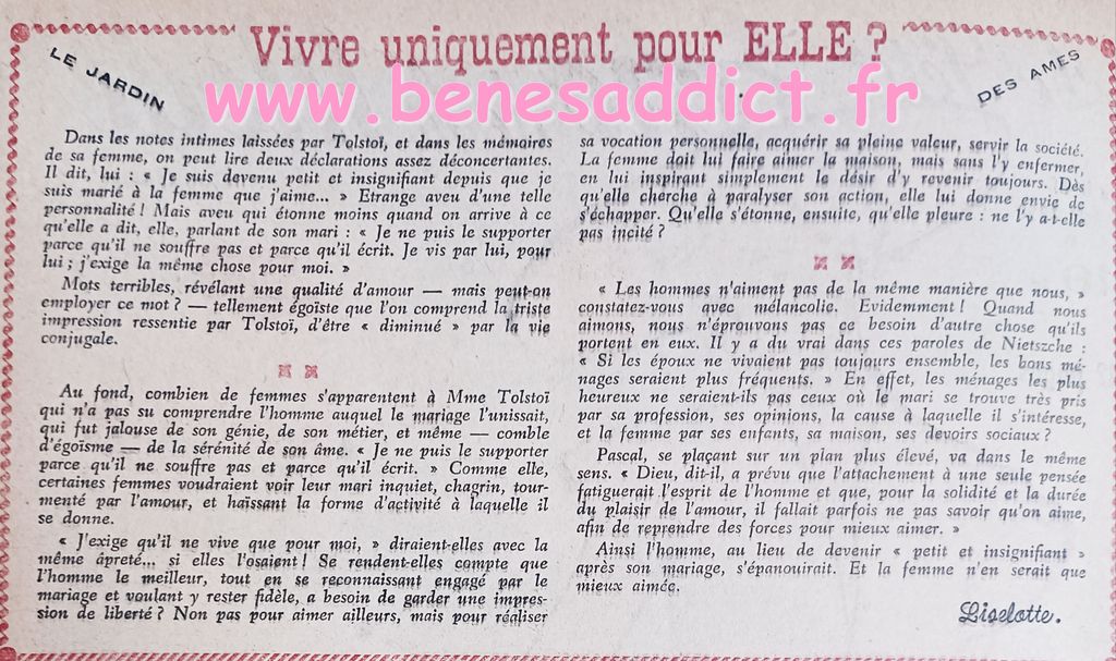 J’adore ce rendez-vous hebdomadaire, qui me fait prendre le temps. Et quand je lis le jardin des âmes tels qu’ils paraissent dans la revue, je suis ravie d’être en 2023. Les mentalités ont évoluées fort heureusement. Tout comme les publicités d’ antan … Particulièrement sexistes, je trouve.