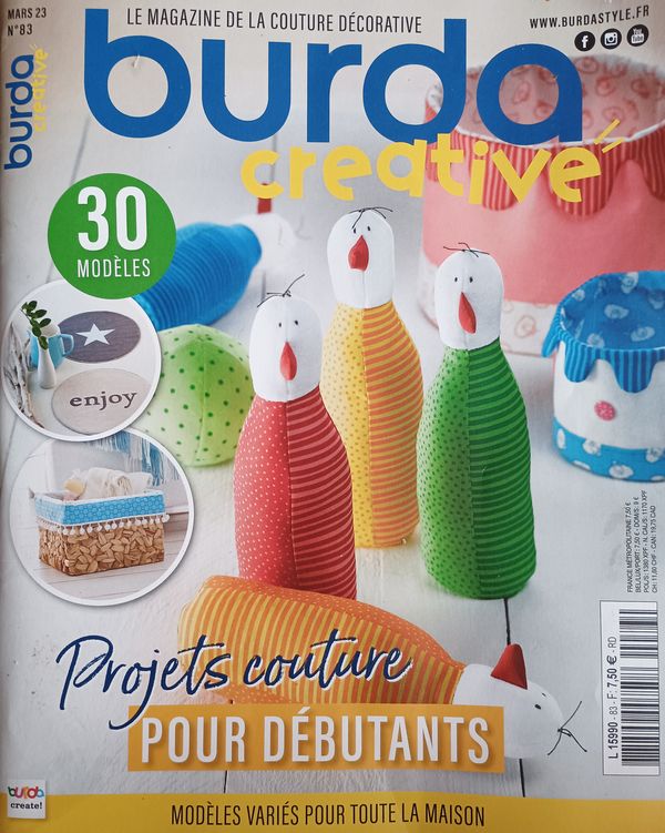 Bonjour, bonjour ! Comment allez-vous ? Ici les vacances commencent ce soir, et donc le besoin et surtout la possibilité de souffler. C’est aussi l’occasion de réfléchir à les rendre studieuses ou pas. Si vous désirez vous lancer dans des projets couture débutants, vous trouverez l’inspiration dans le dernier Burda Créative n° 83. C’est un magazine dédié à la couture des accessoires.