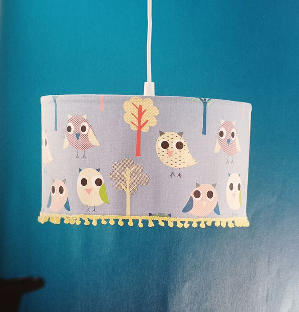 Je n’avais pas pensé à la réalisation d’un abat-jour en tissu, alors que c’est facile à faire. Cette option permet d’assortir la décoration aux luminaires.