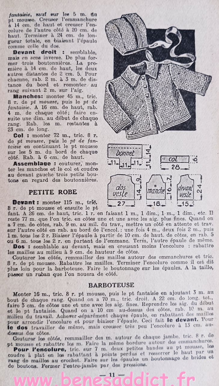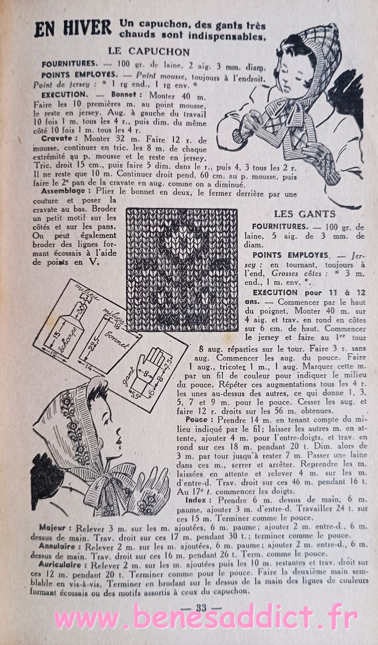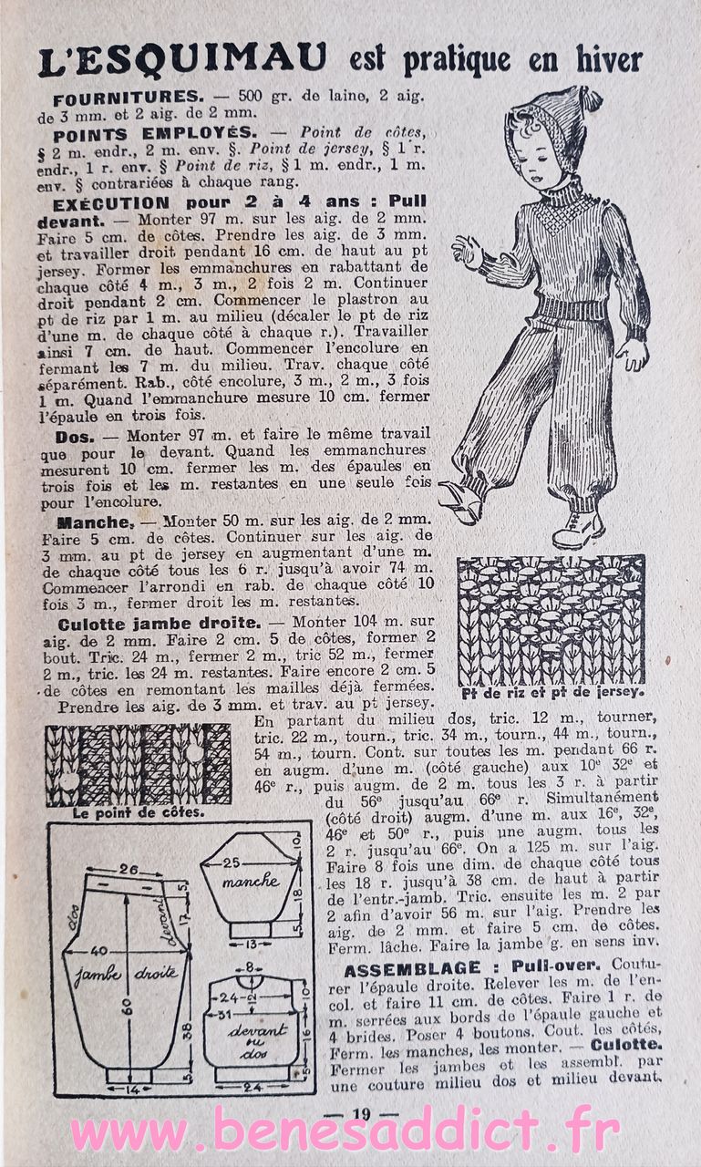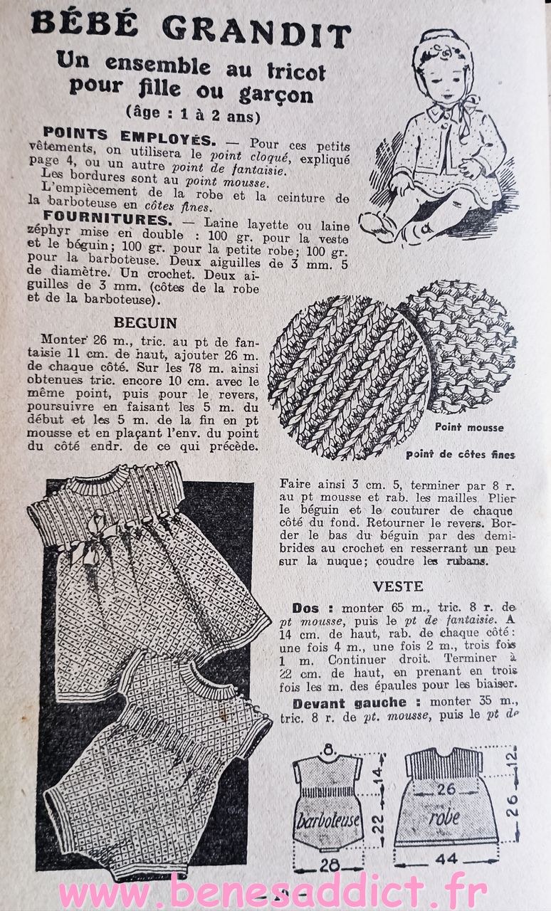 Donc ce petit Livret de plus de soixante pages nous enseigne l’art d’habiller les enfants. Plus précisément, il contient une soixantaine de patrons de couture, et quelques modèles à tricoter de la naissance à douze ans. Mais aussi des astuces pour transformer les vêtements, et même pour réaliser des chaussures pour les petites têtes blondes. Que l’on peut maintenant transposer pour adultes aussi.