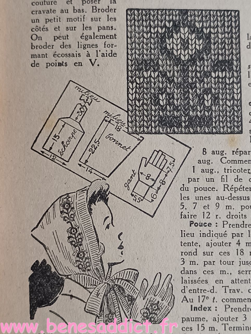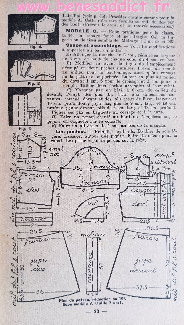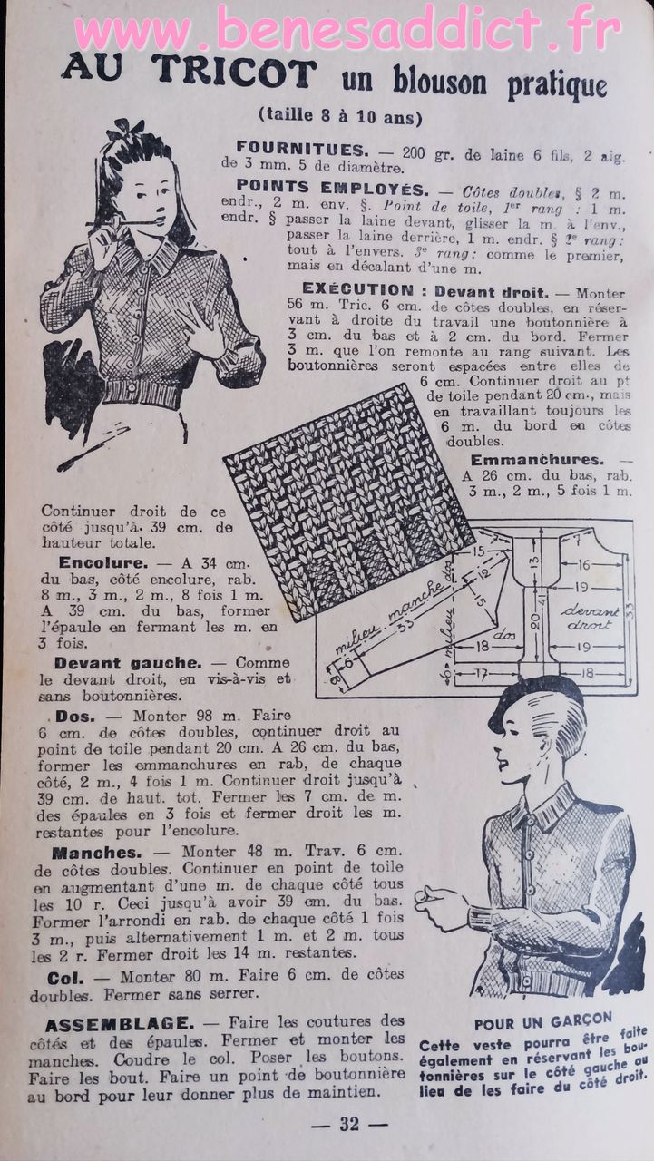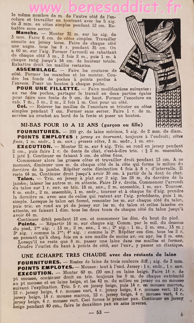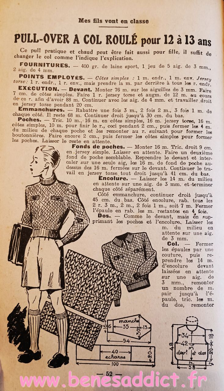 Donc ce petit Livret de plus de soixante pages nous enseigne l’art d’habiller les enfants. Plus précisément, il contient une soixantaine de patrons de couture, et quelques modèles à tricoter de la naissance à douze ans. Mais aussi des astuces pour transformer les vêtements, et même pour réaliser des chaussures pour les petites têtes blondes. Que l’on peut maintenant transposer pour adultes aussi.