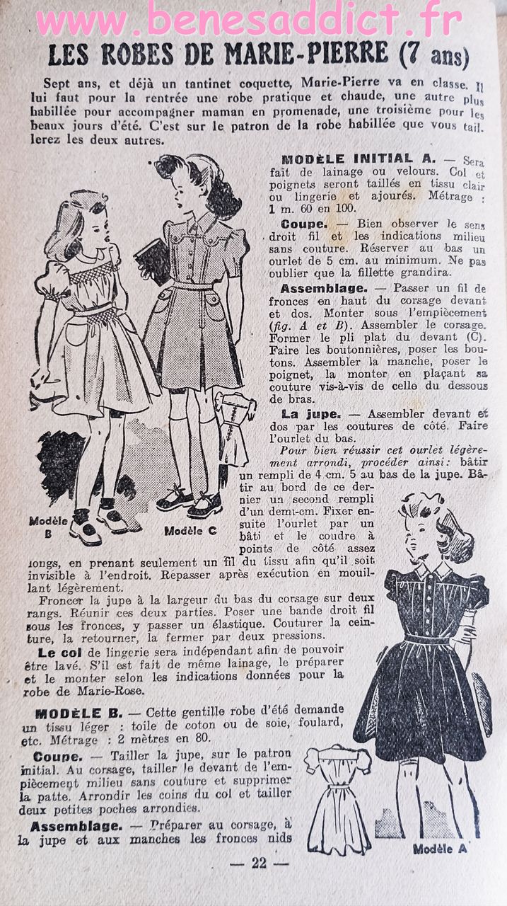 J’ Habille Mes Enfants, avec 60 Patrons Couture GRATUITS de 1948