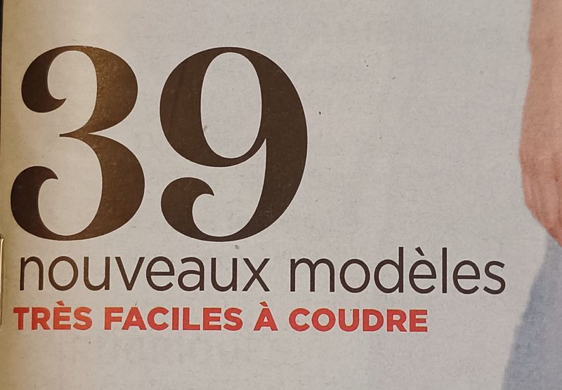 Dans ce numéro, nous avons 39 modèles de modes tendances. Le très facile à coudre est relatif, je dirai plutôt que vous trouverez de quoi vous faire plaisir quel que soit votre niveau en couture. Je rajouterai aussi, que nous n’avons pas 39 modèles radicalement différents, mais des variantes.
