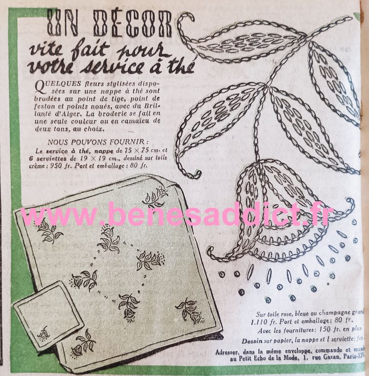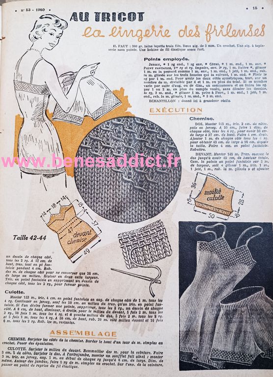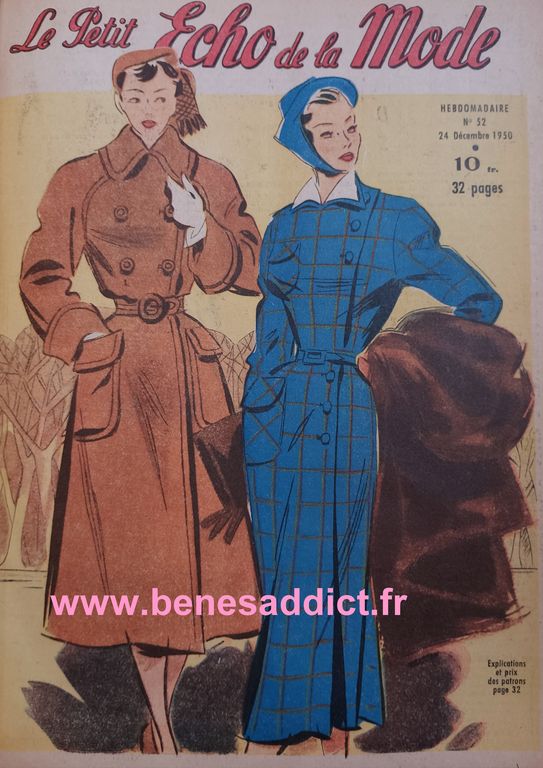 Et pour rester dans l’esprit vintage, du lundi, je partage avec vous la suite et fin de mon recueil de l’année 1952 du » Petit Écho De La mode ». Il contient de la couture, du tricot, mais aussi des recettes de cuisine, tout comme de la broderie, mais encore des astuces pour la vie de tous les jours. Découvrez à travers le courrier des lectrices les soucis de nos grand-mères, et la façon de penser de la société. Je trouve qu’ils sont toujours intéressants. Tout comme les réclames souvent un brin sexistes…
