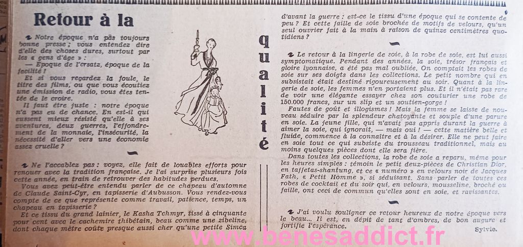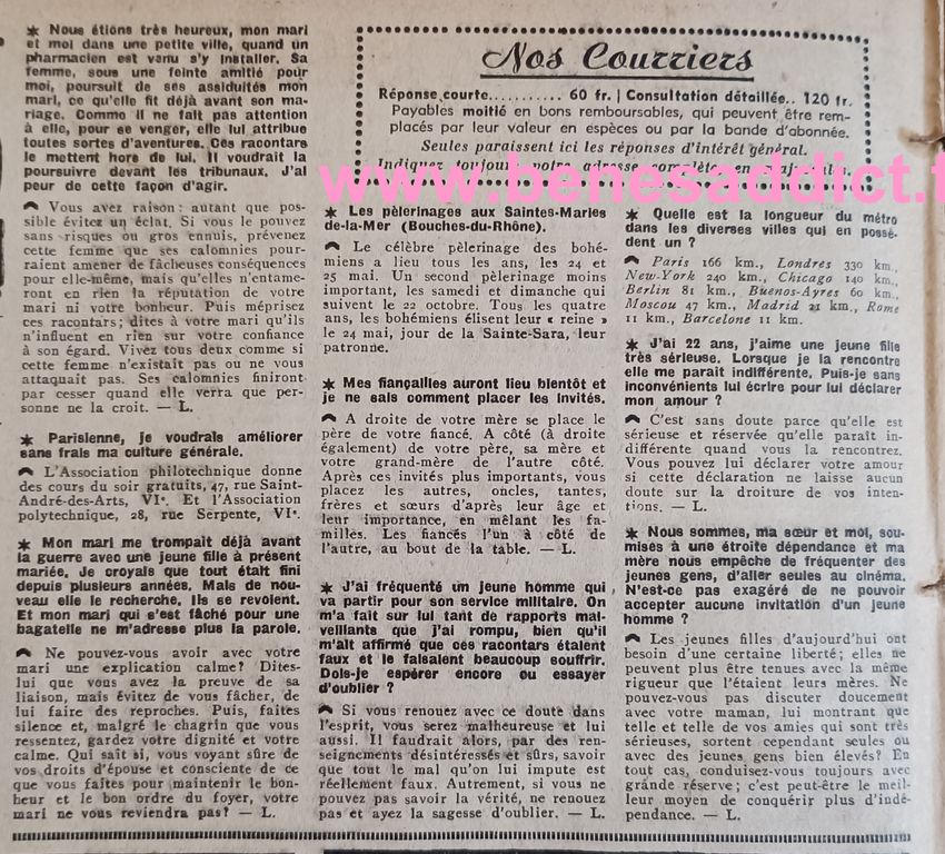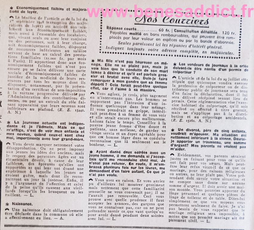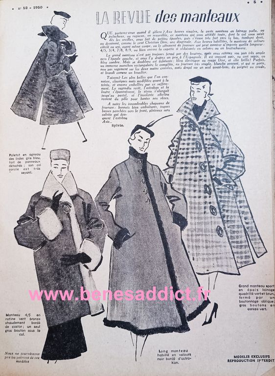 Esprit Vintage de 1952, Mode, Couture, Tricot, Cuisine, Courrier du cœur
