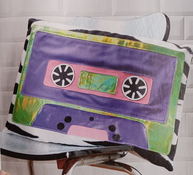 Je suis fan de ce coussin cassette audio, je le verrais même en version XL sac cabas pas vous ? En plus le chois des couleurs est top et vraiment typées années 80.
